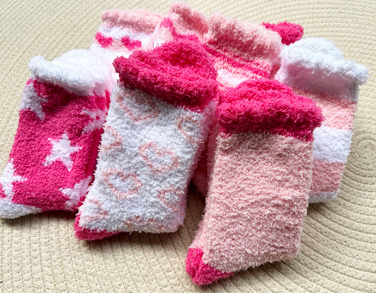 가을과 겨울 새로운 산호 양털 튜브 양말은 두껍게 따뜻한 여성 양말 홈 바닥 양말 여성 국경 간 여성 양말 레저 수면