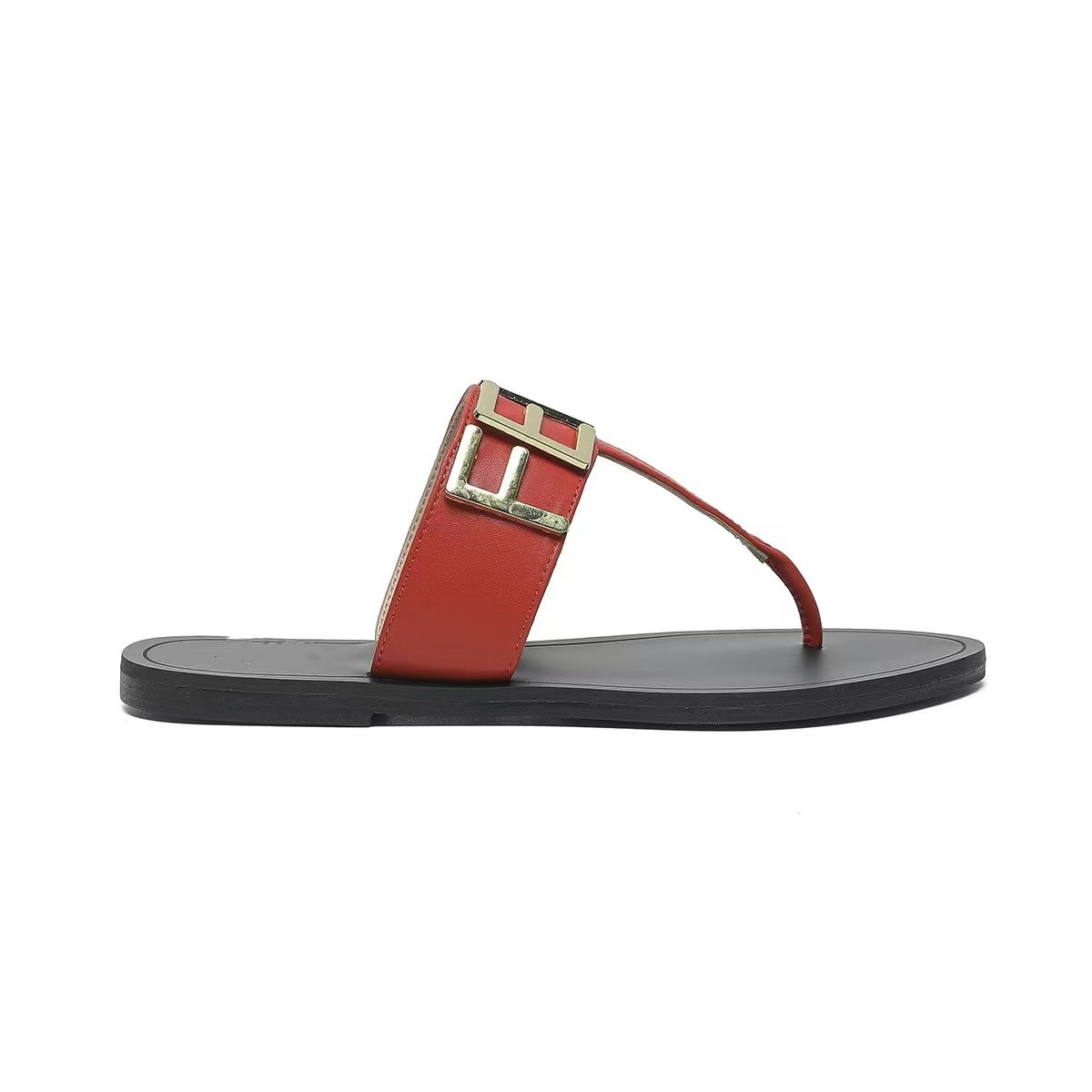2024 새로운 하이 엔드 버전 플랫 슬리퍼 마이크로 파이버 고무 플립 플롭 하드웨어 문자 로고 여성용 슬리퍼