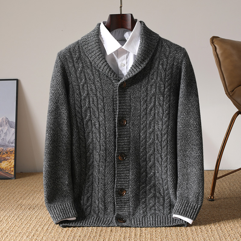 캐시미어 스웨터 남자의 무거운 두꺼운 옷깃 버튼 단색 과일 칼라 카디건 블랙 스웨터 남자 스웨터 재킷스토어 가기