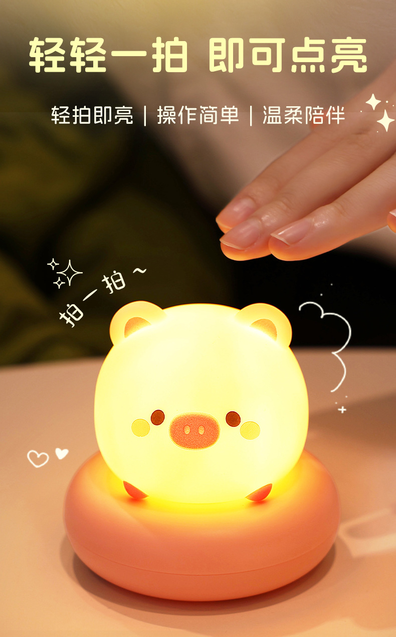 • 충전식 핑크 돼지 램프 3단계 따뜻한 조명