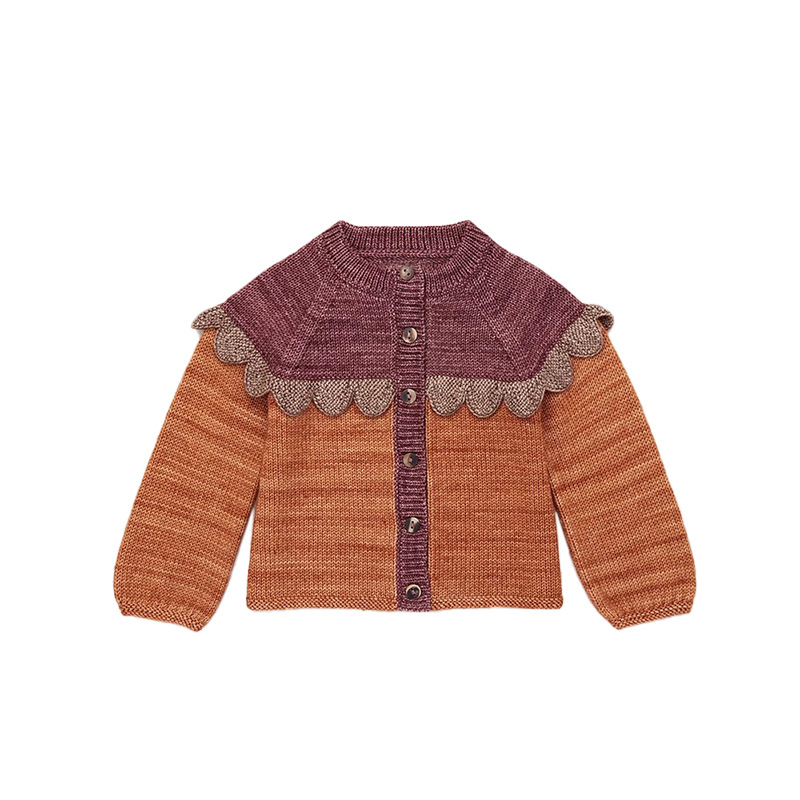 • 카라멜 오렌지 컬러 블록 니트 가디건 [재고]