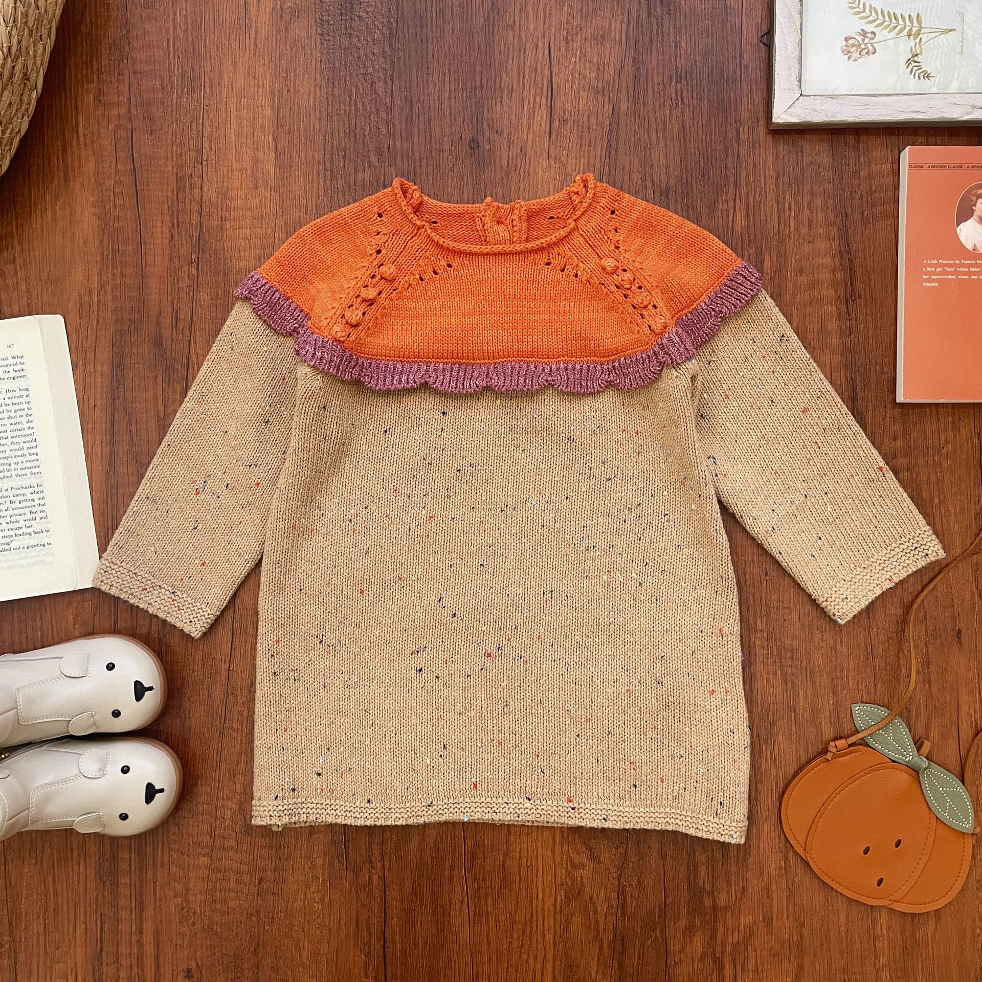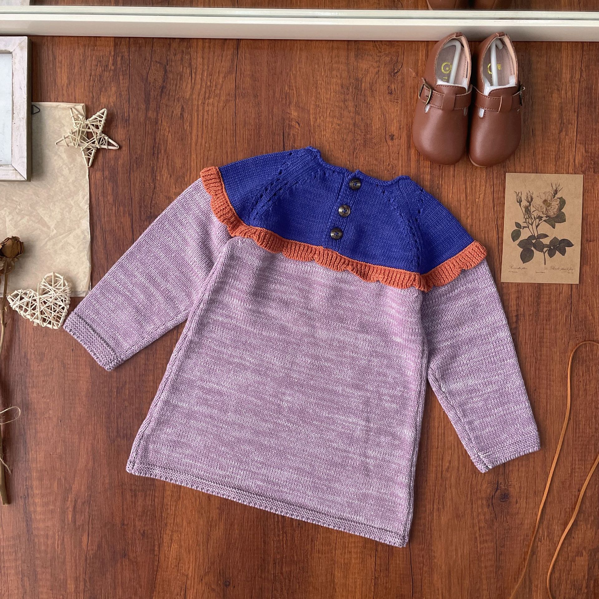 스팟상품! 아동 스웨터 2025 겨울 MP 홀리데이 시리즈 여아 컬러 스플라이싱 스웨터 드레스 세트