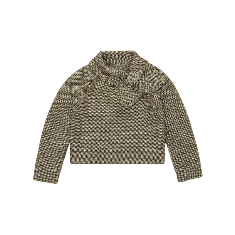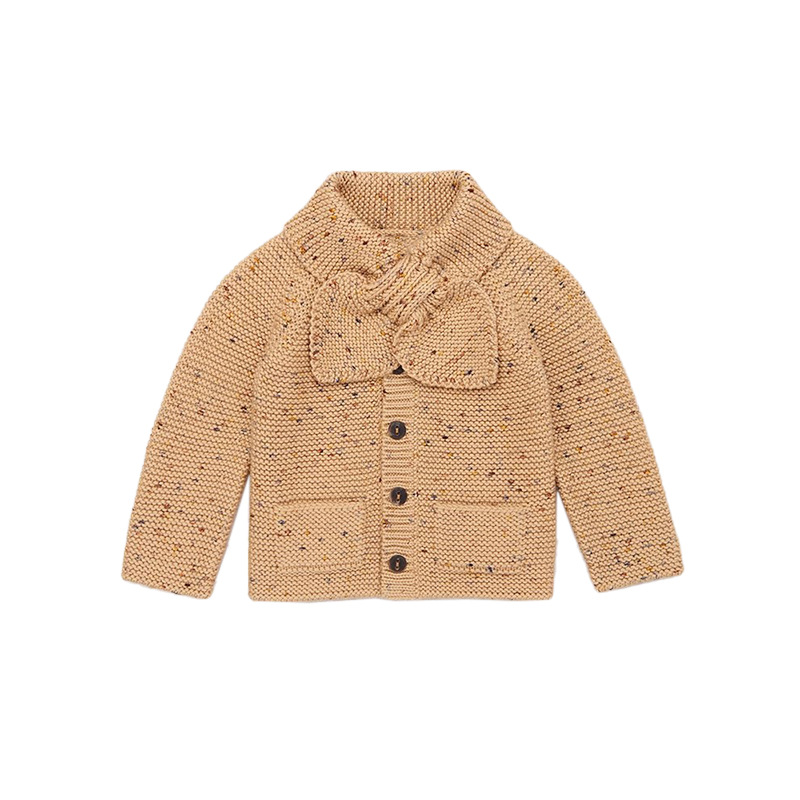 • 카멜 컬러 도트 리본 니트 가디건 [재고]