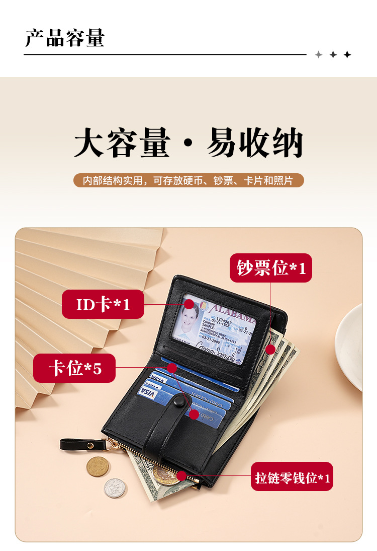 간단한 지갑 여성의 짧은 얇은 작은 접는 학생 지갑 2024 새로운 틈새 변경 카드 홀더 국경 핫 세일스토어 가기