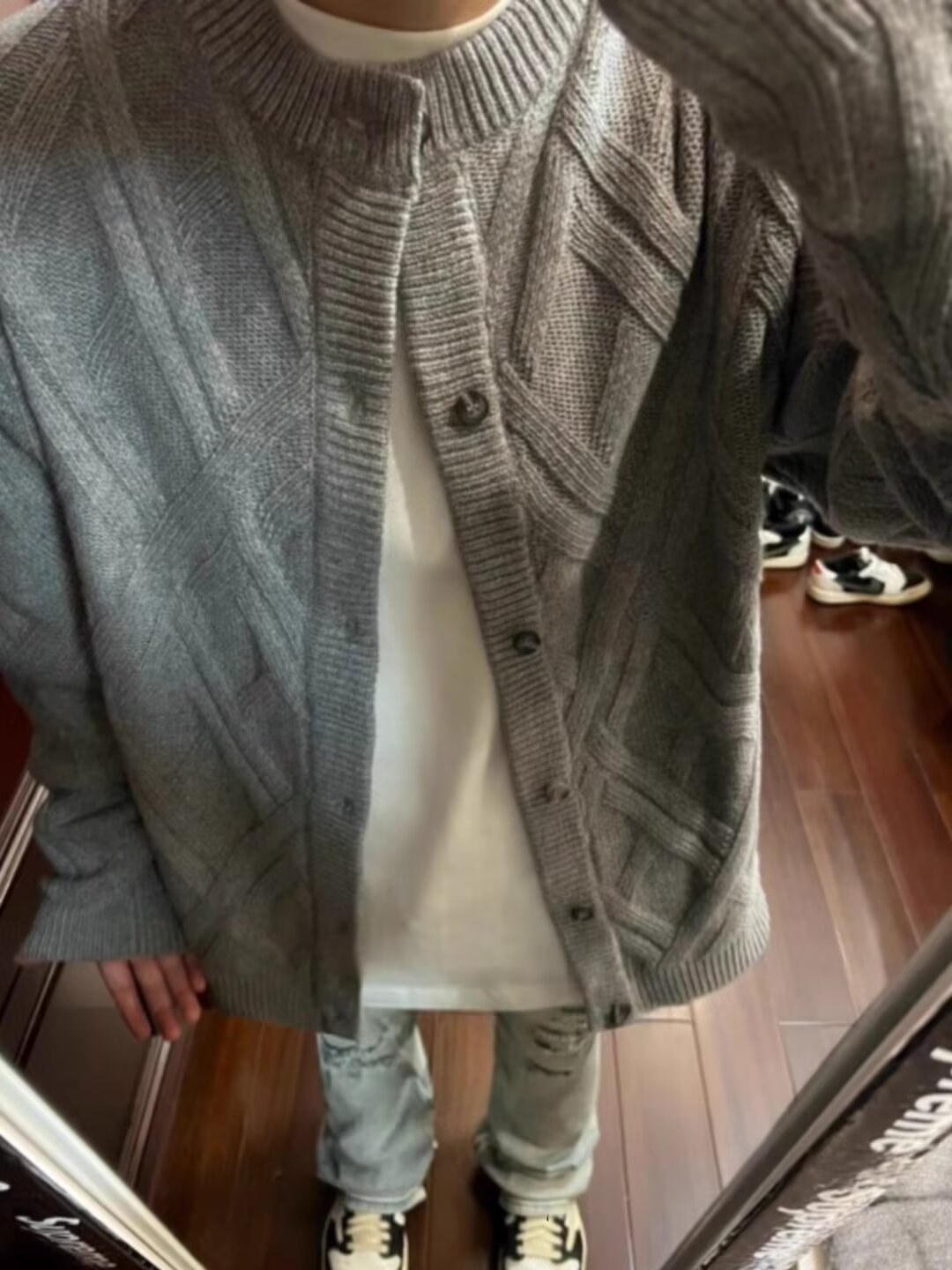 아이보리 트위스트 지퍼 칼라 니트 카디건 남자 일본 스타일 레트로 루즈 캐주얼 따뜻한 올 매치 스웨터 재킷스토어 가기