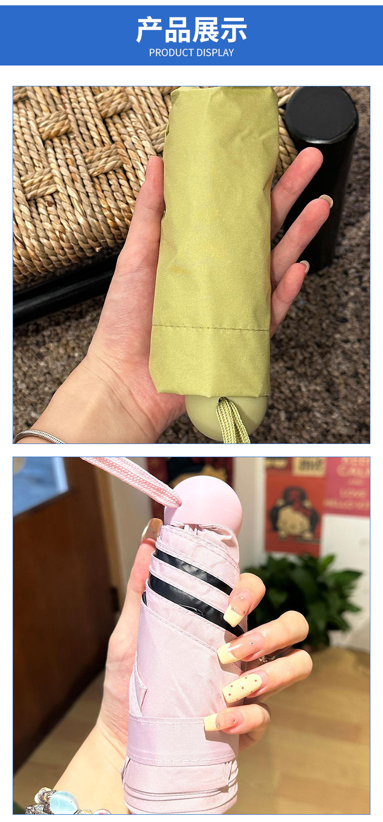 캡슐 태양 우산 50% 폴드 휴대용 남성과 여성의 미니 차양 우산 선 스크린 안티-UV 햇빛과 비 이중 목적 접는 우산스토어 가기