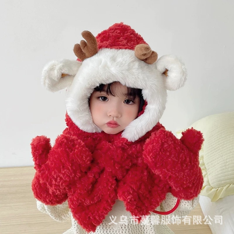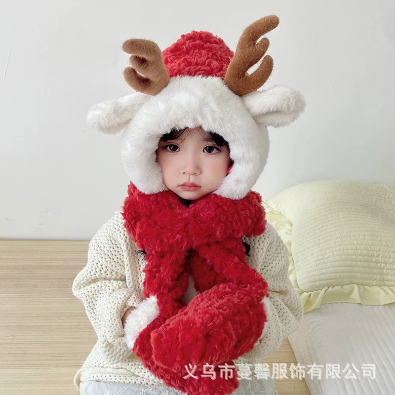 • 사슴뿔 모자, 스카프 + 장갑 일체형