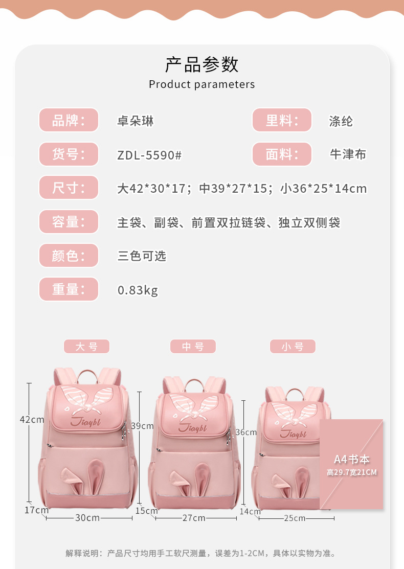 Zhuo Duolin Schoolbag 초등학교 소녀 1, 2, 3 ~ 6 학년 어린이 배낭 부담을 줄이고 소녀의 척추 보호