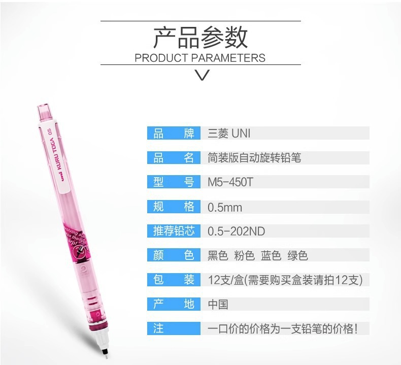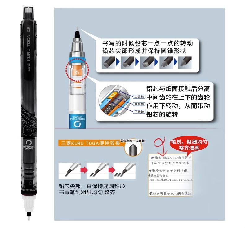 일본 미쓰비시 기계 연필 M5-450T 단일 속도 블랙 기술 회전 연필 연속 리드 0.5mm 연필스토어 가기
