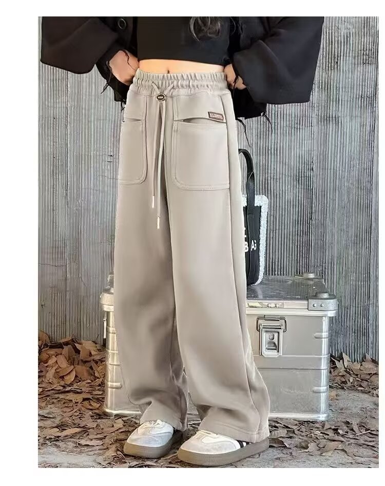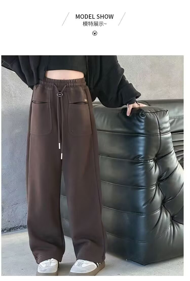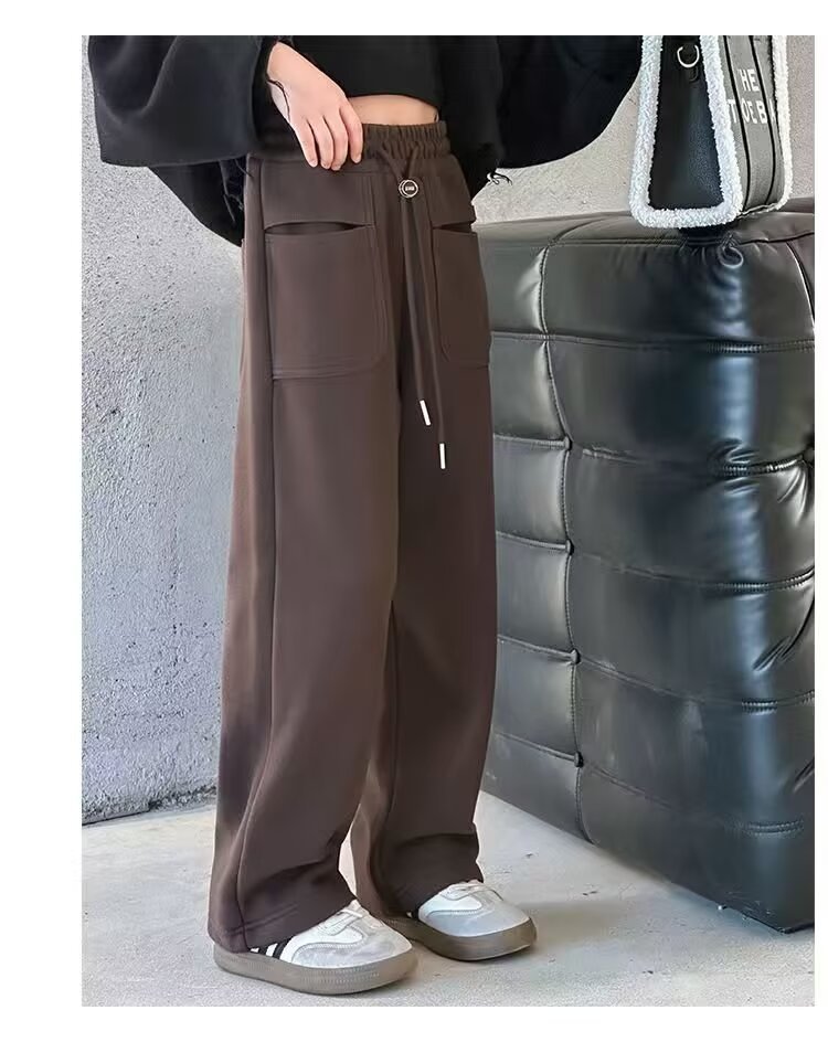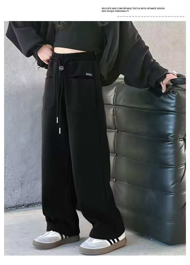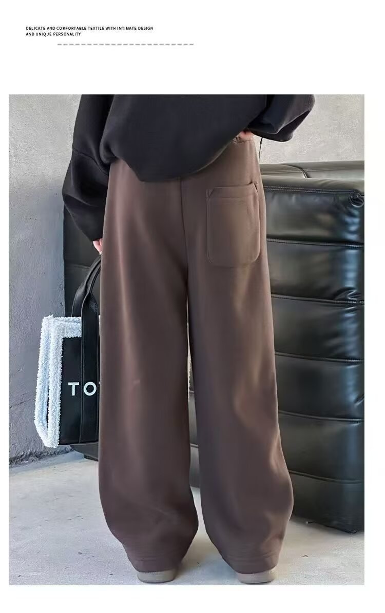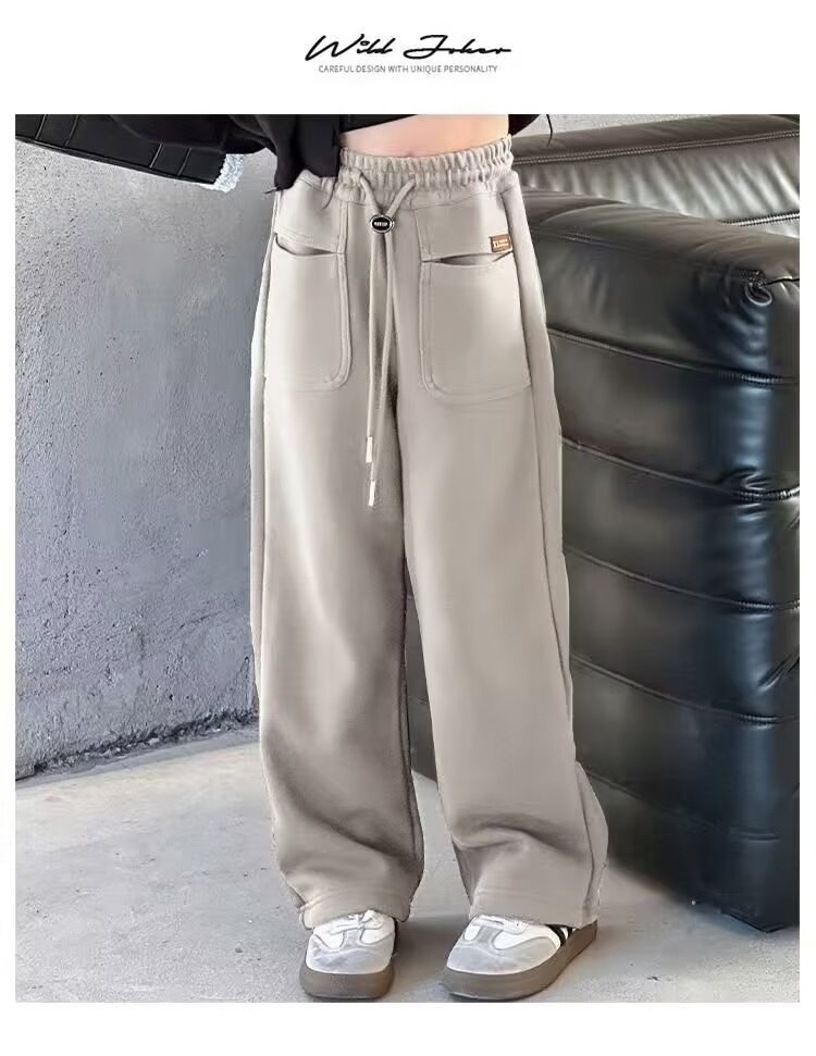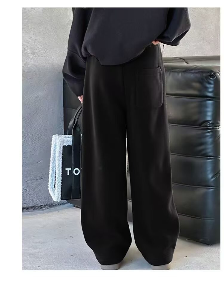 소녀 캐주얼 바지 2024 봄과 가을 새로운 어린이 가을 겨울 두꺼운 원피스 벨벳 바지 느슨한 스트레이트 와이드 레그 바지스토어 가기