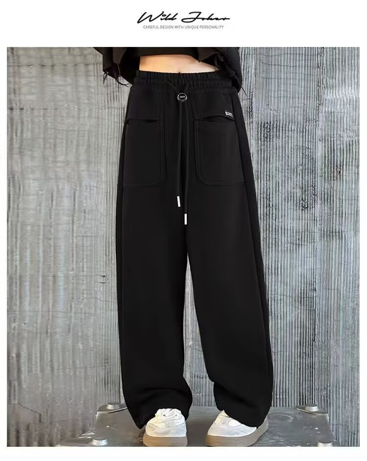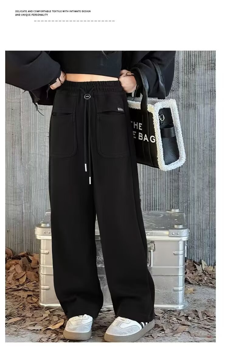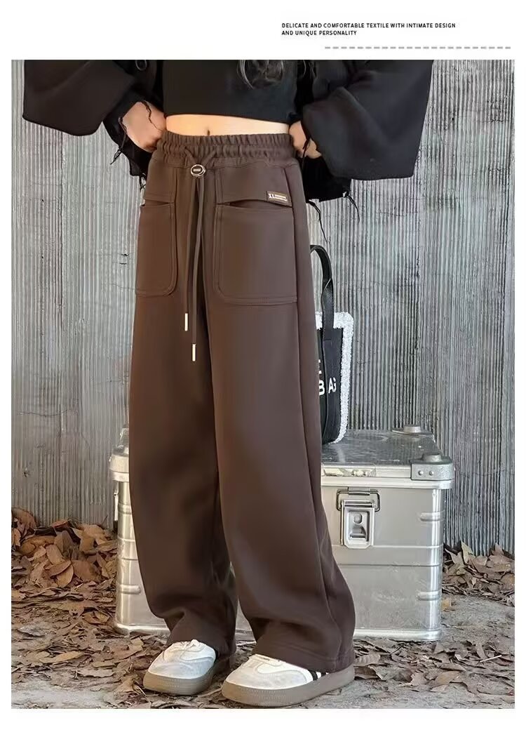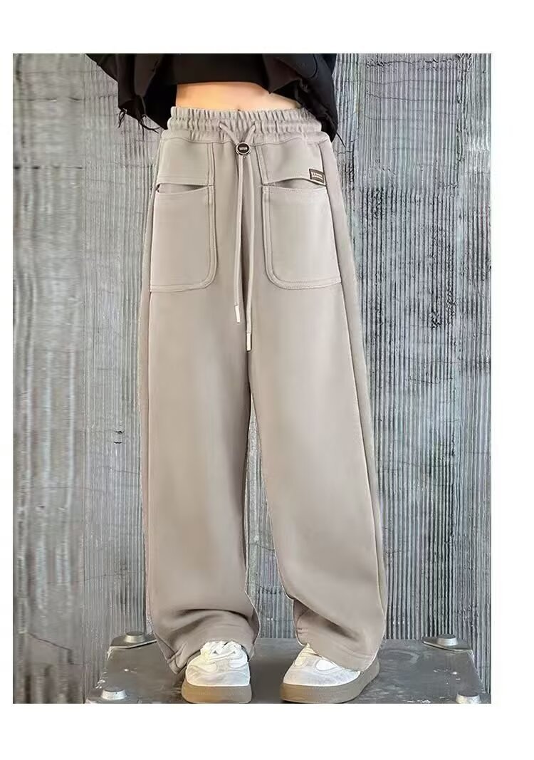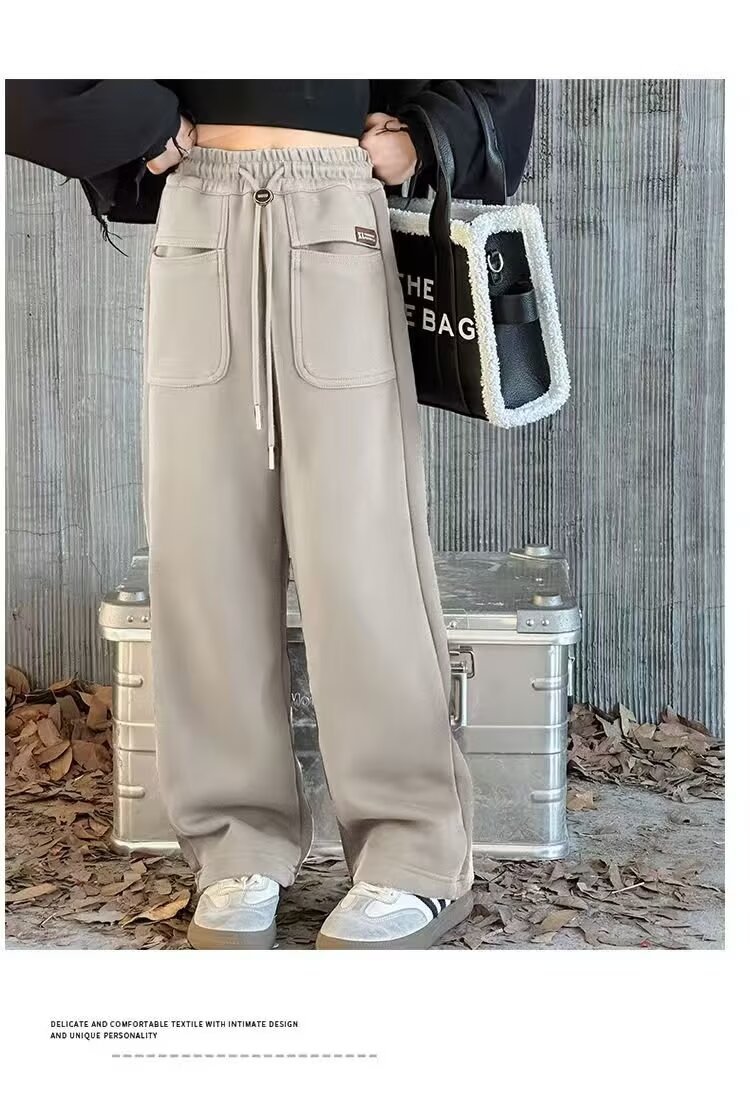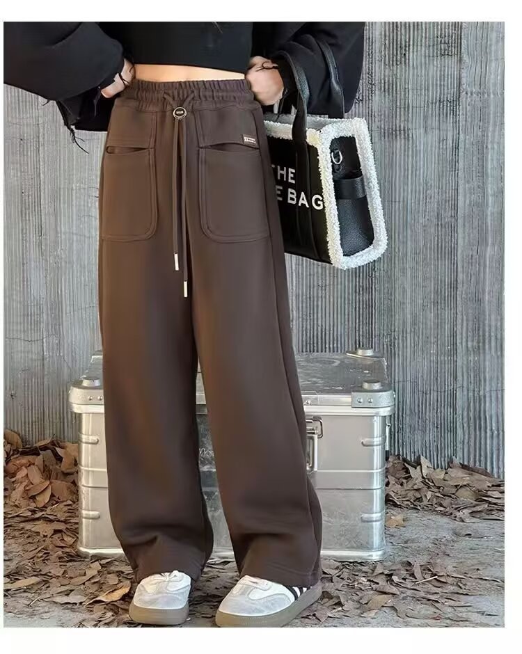 소녀 캐주얼 바지 2024 봄과 가을 새로운 어린이 가을 겨울 두꺼운 원피스 벨벳 바지 느슨한 스트레이트 와이드 레그 바지스토어 가기