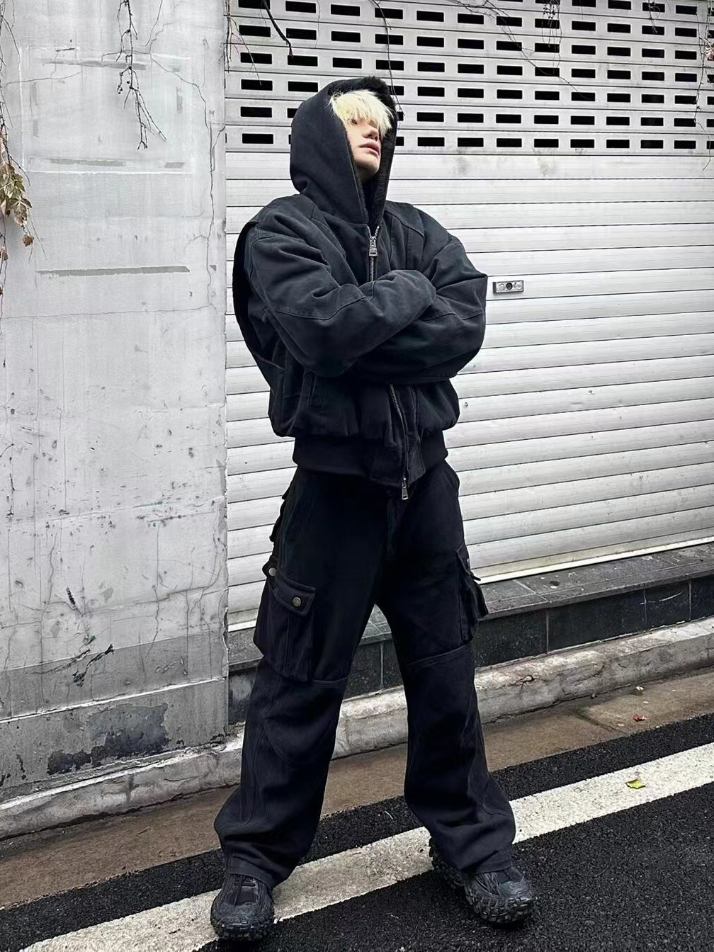 아메리칸 스타일 레트로 지샨 조각 기모 두꺼운 자켓 남성 클렌핏 헤비 트렌디 브랜드 캔버스 세척 코튼 패딩 재킷