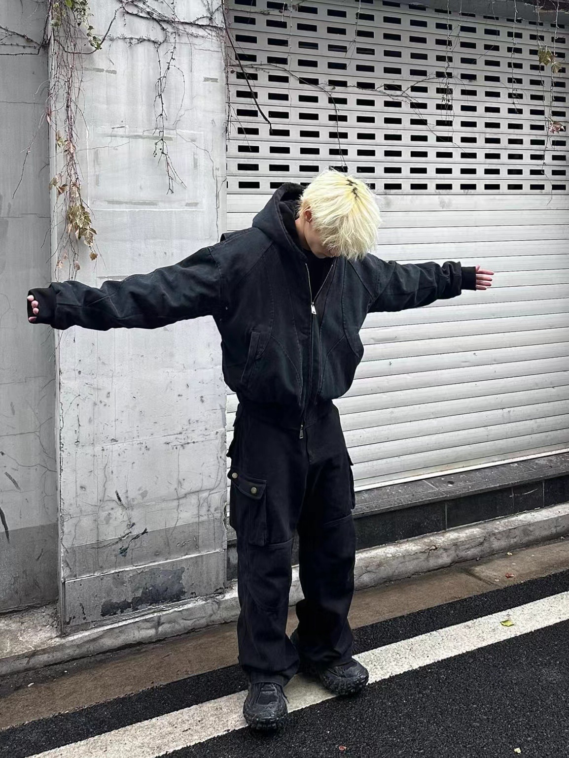 아메리칸 스타일 레트로 지샨 조각 기모 두꺼운 자켓 남성 클렌핏 헤비 트렌디 브랜드 캔버스 세척 코튼 패딩 재킷스토어 가기