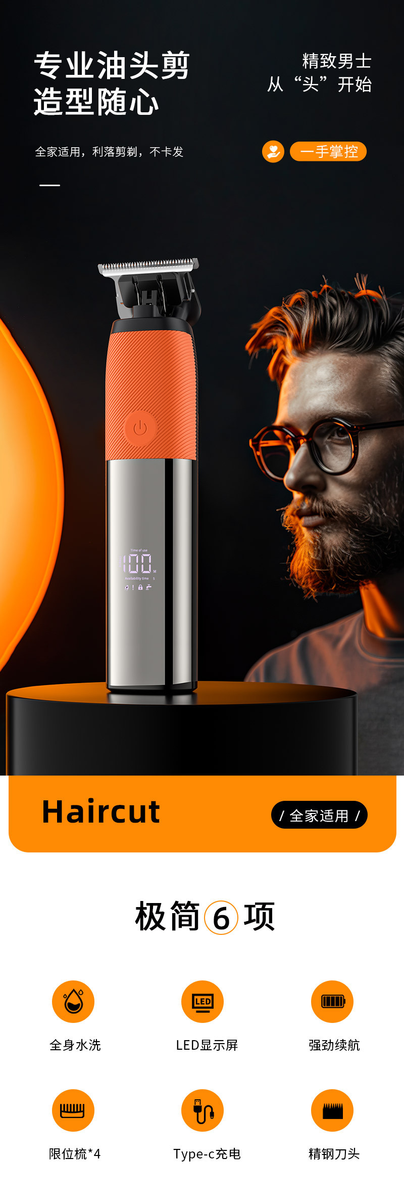 국경을 넘는 새로운 디자인의 디지털 디스플레이 미니 휴대용 헤어 트리머, 고출력 조각용 전기 이발기, 물세척 가능한 이발기스토어 가기