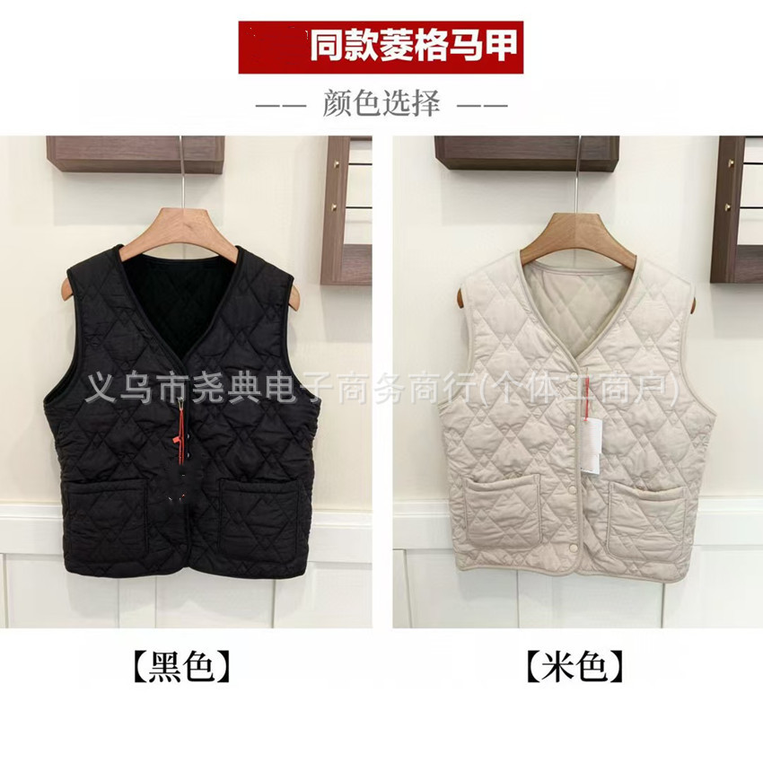 Youjia U+ 같은 스타일의 클래식 마름모 조끼 여성 가을, 겨울 따뜻한 조끼 2 색 옵션 다용도 일본과 한국의 간단한 조끼