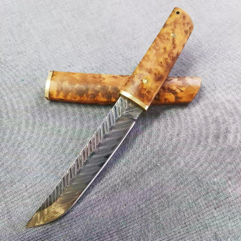 야외 커터 다마스커스 스틸 VG10 고경도 캠핑 과일 칼 수집가 나이프 플레이 통합 킬 티베트 나이프와 함께