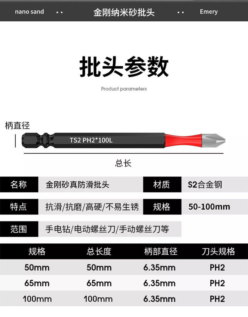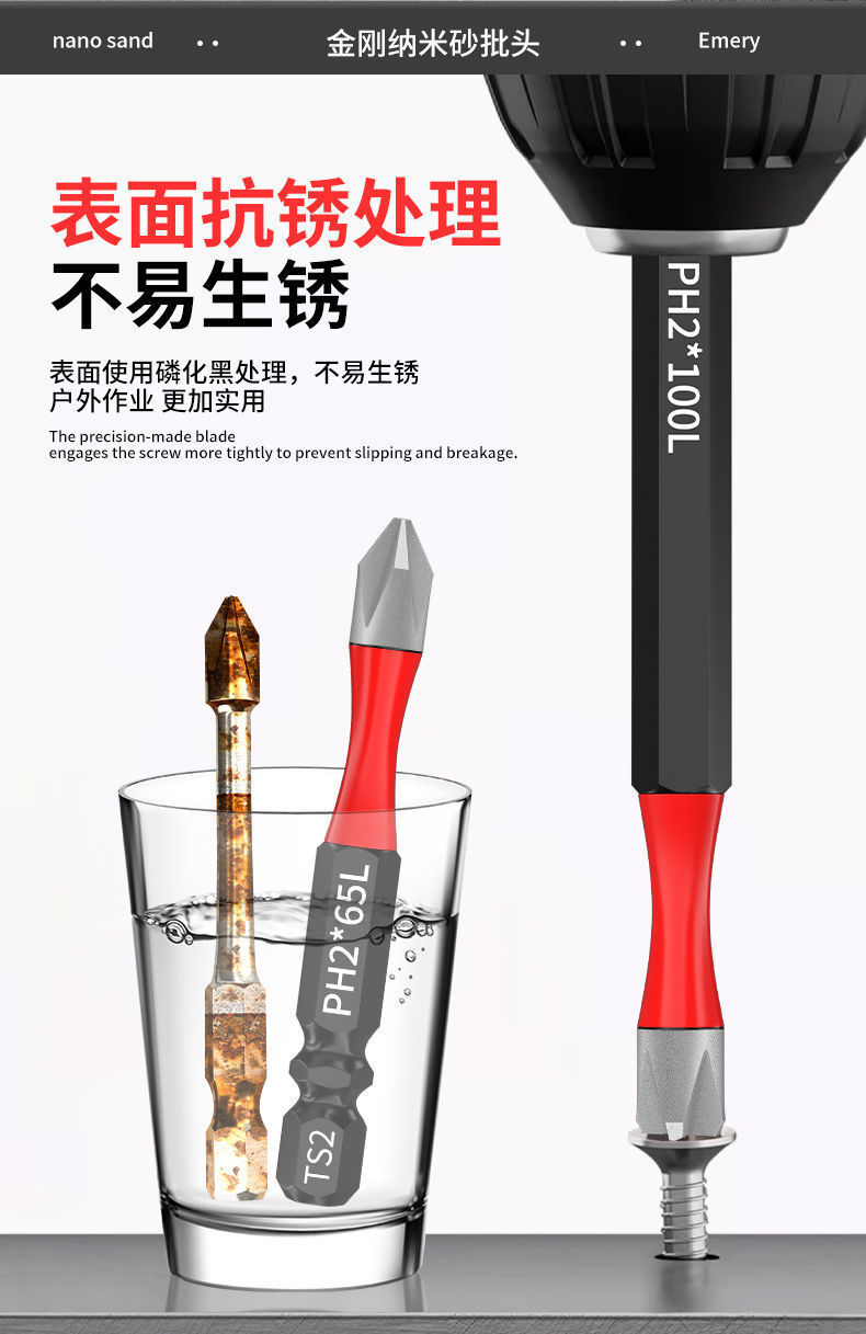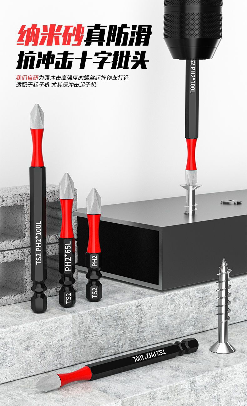 S2 나노 모래 크로스 배치 헤드 강한 자기 미끄럼 텅스텐 강철 높은 경도 전기 드라이버 배치 손 전기 드릴 육각형 세트
