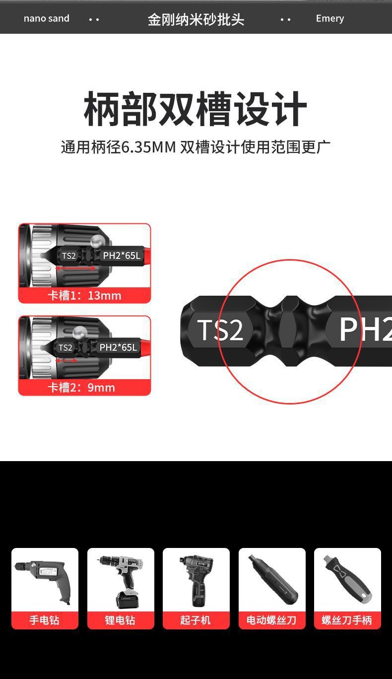 S2 나노 모래 크로스 배치 헤드 강한 자기 미끄럼 텅스텐 강철 높은 경도 전기 드라이버 배치 손 전기 드릴 육각형 세트스토어 가기