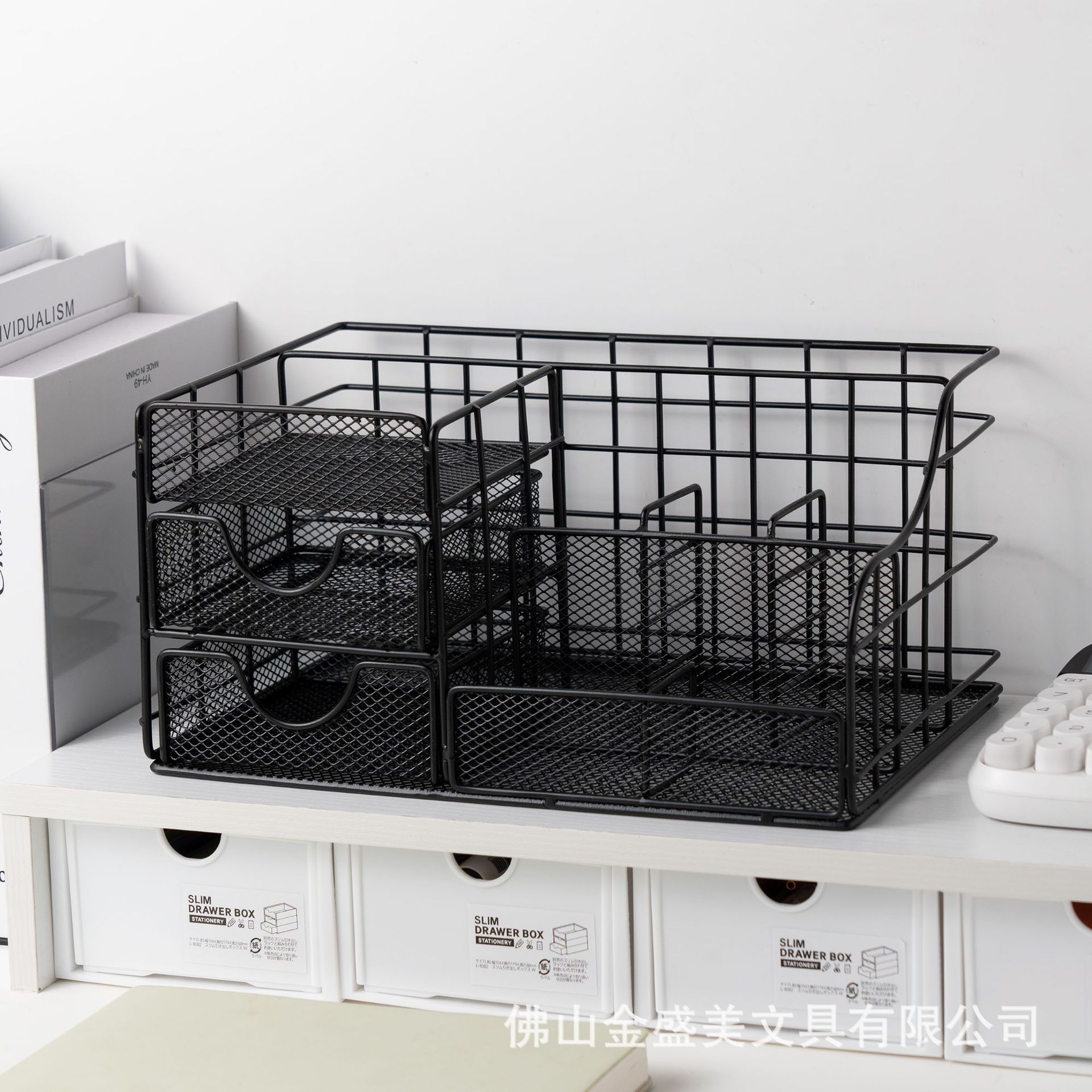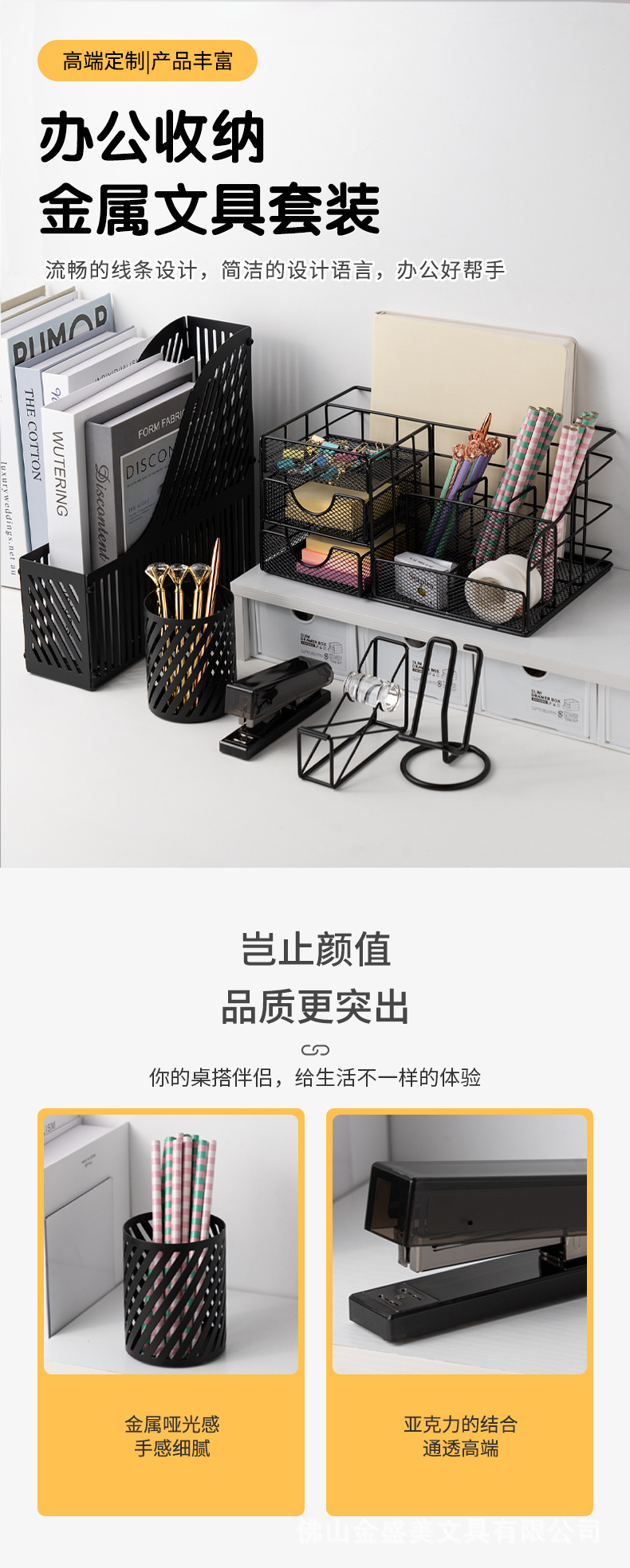국경 간 창조적 인 검은 금속 데스크탑 저장 랙 펜 홀더 대용량 다기능 문구 저장 스테이플러 도매스토어 가기