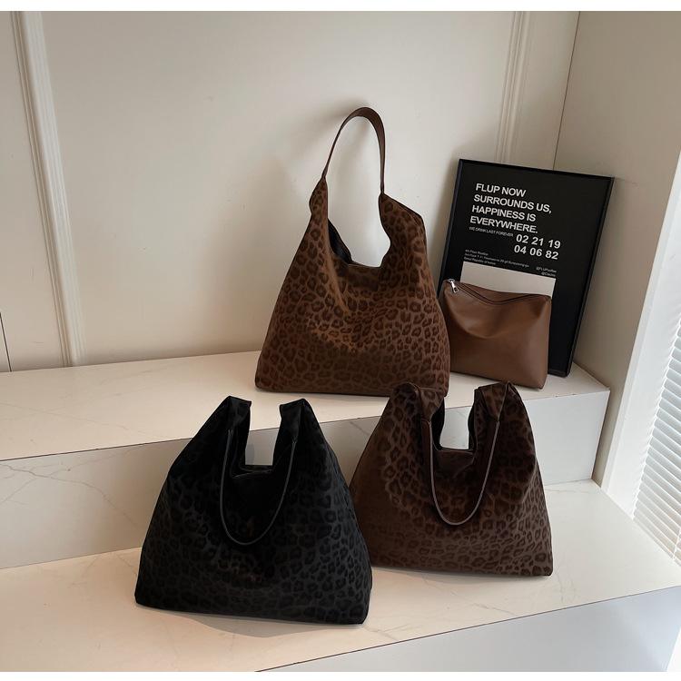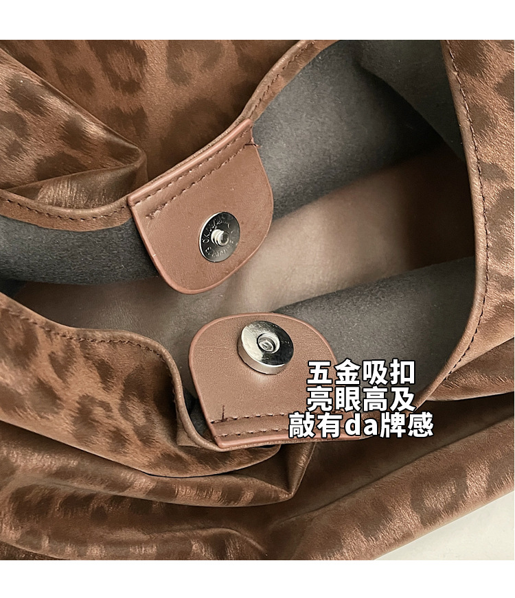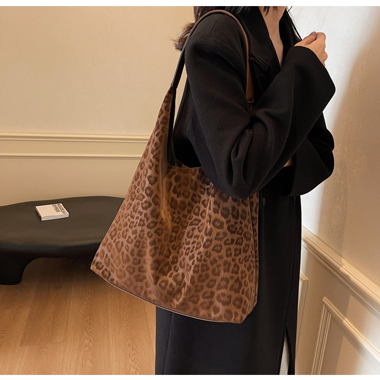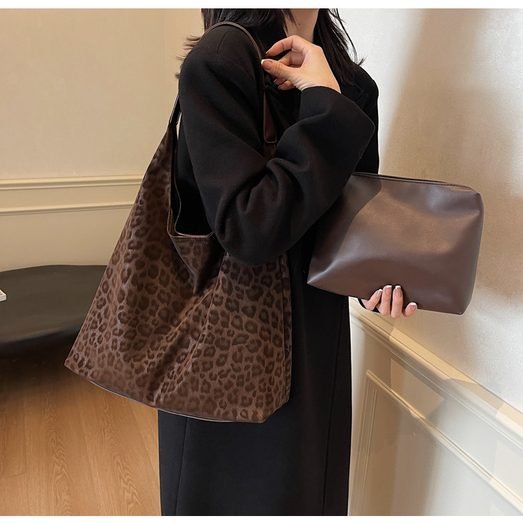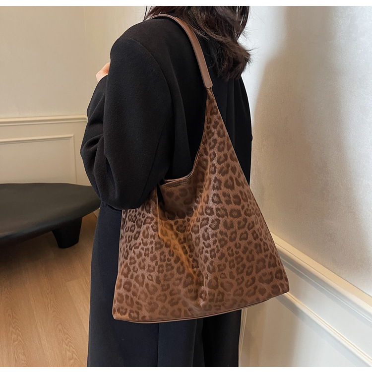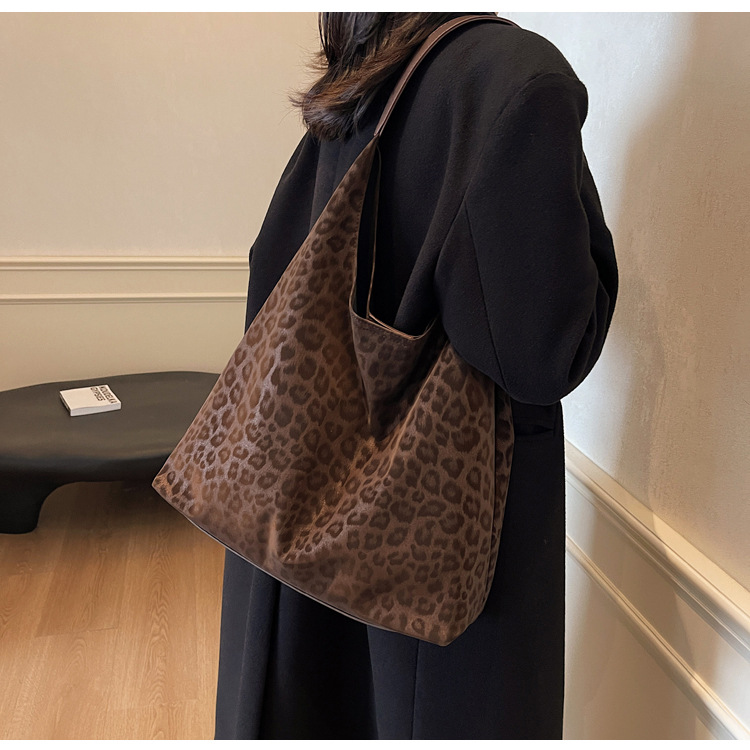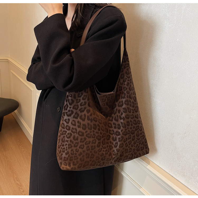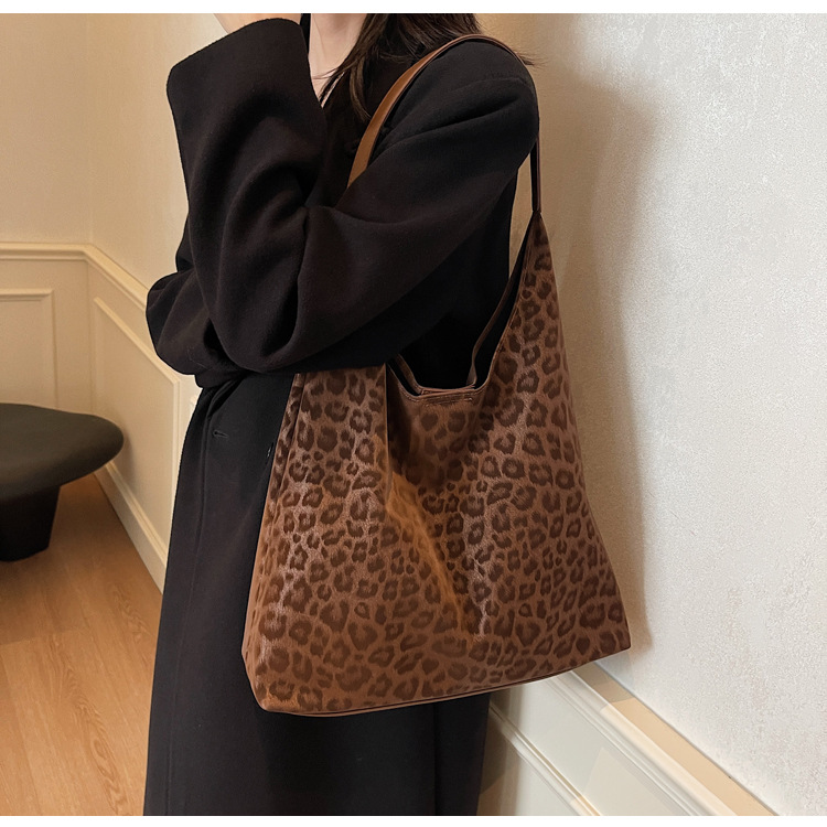 레오파드 무늬 가방 여성의 대용량 2024 새로운 가을과 겨울 캐주얼 어깨 가방 유행 작업 통근 토트 백