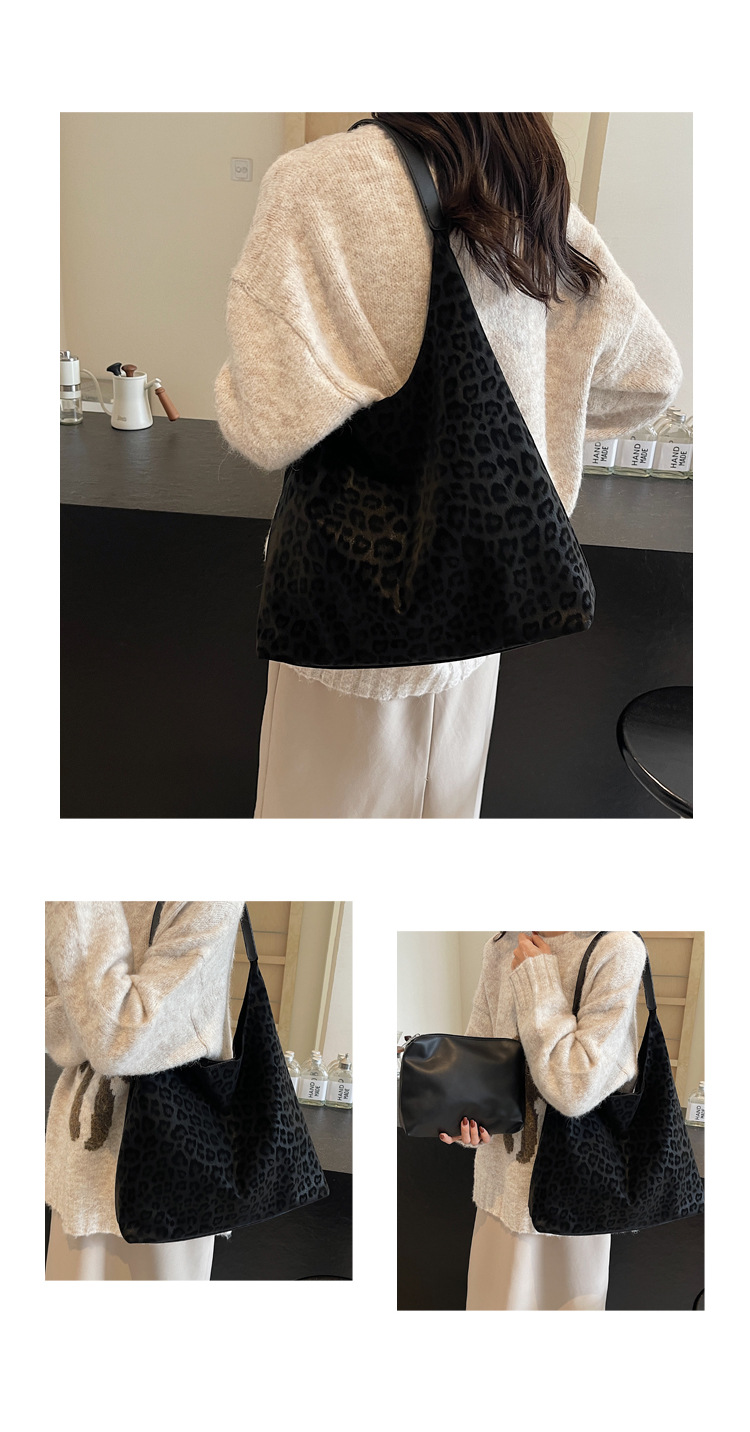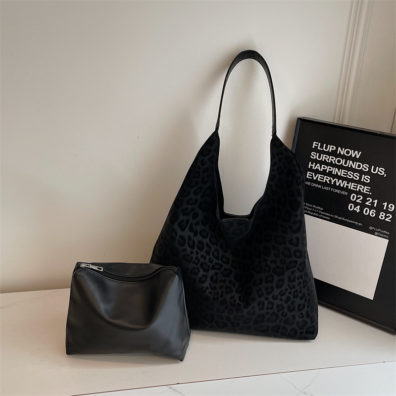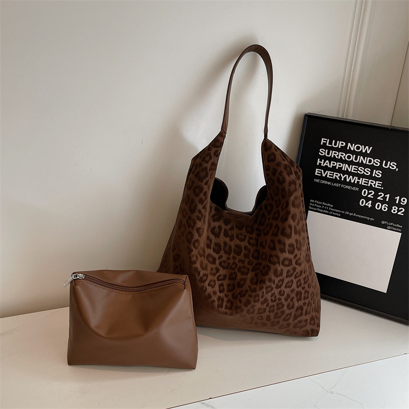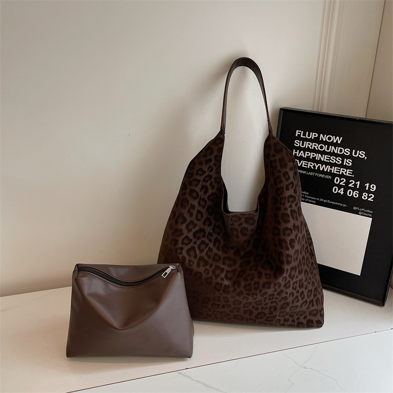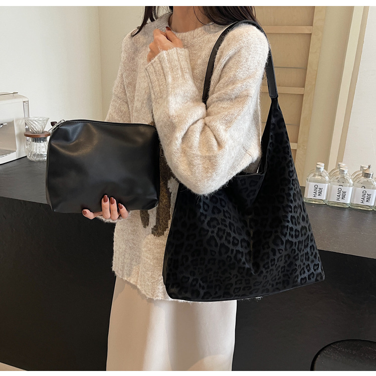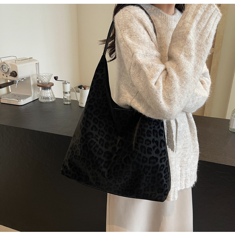 레오파드 무늬 가방 여성의 대용량 2024 새로운 가을과 겨울 캐주얼 어깨 가방 유행 작업 통근 토트 백