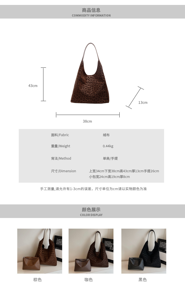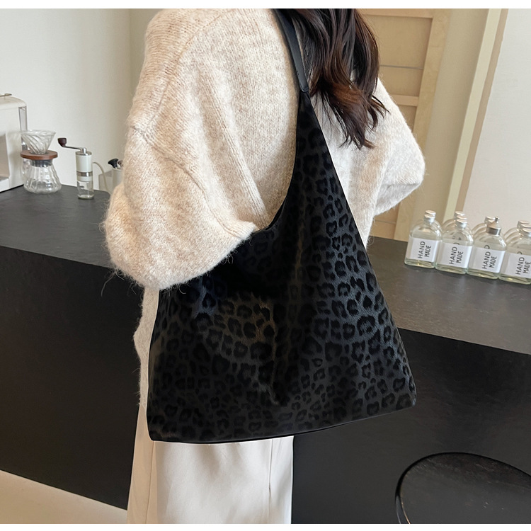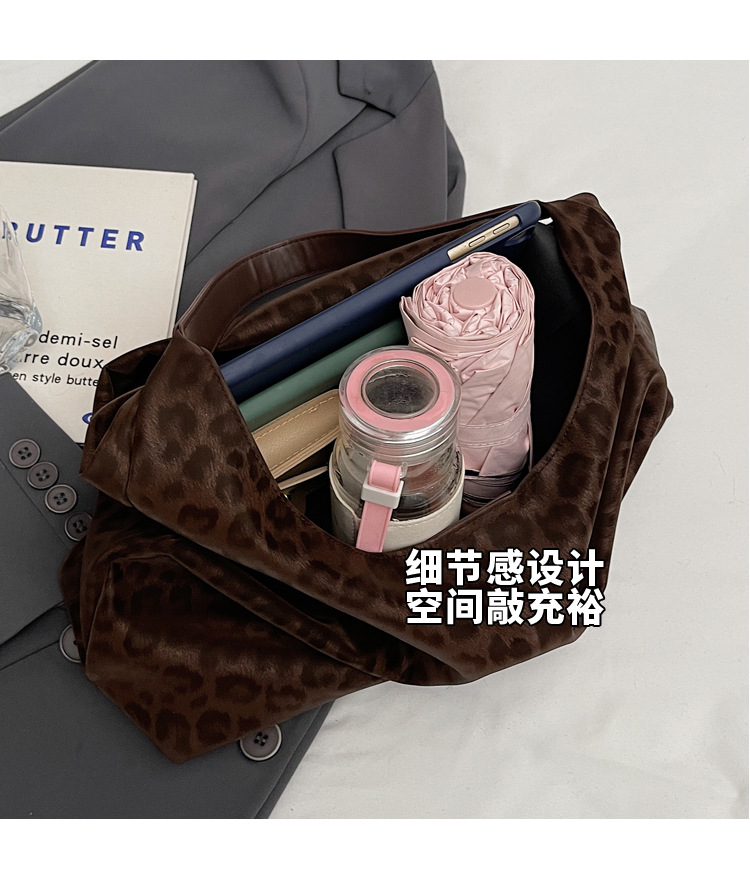 레오파드 무늬 가방 여성의 대용량 2024 새로운 가을과 겨울 캐주얼 어깨 가방 유행 작업 통근 토트 백스토어 가기