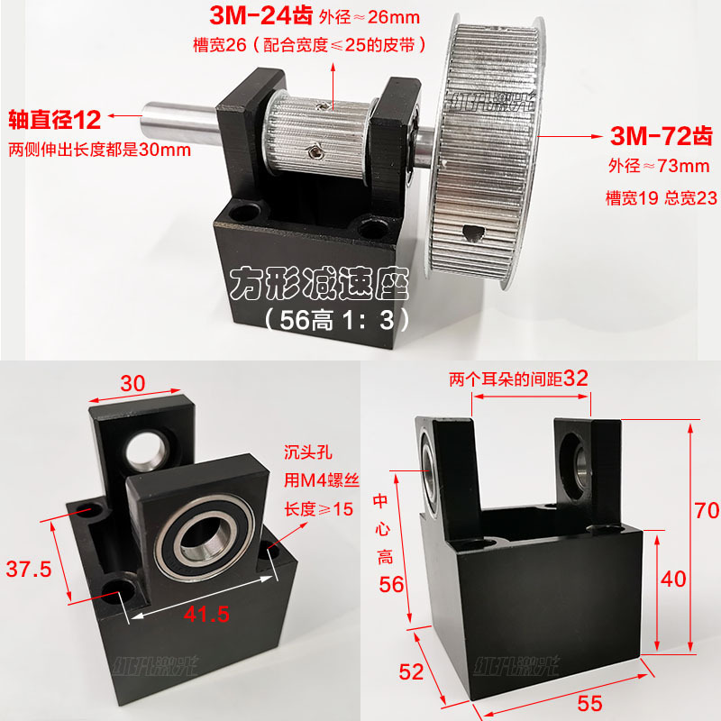 • 키 핀이 있는 높이 56의 사각 감속 시트(작은 바퀴 24개, 큰 바퀴 72개)