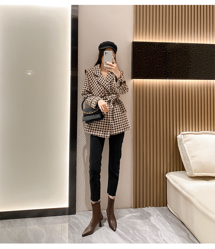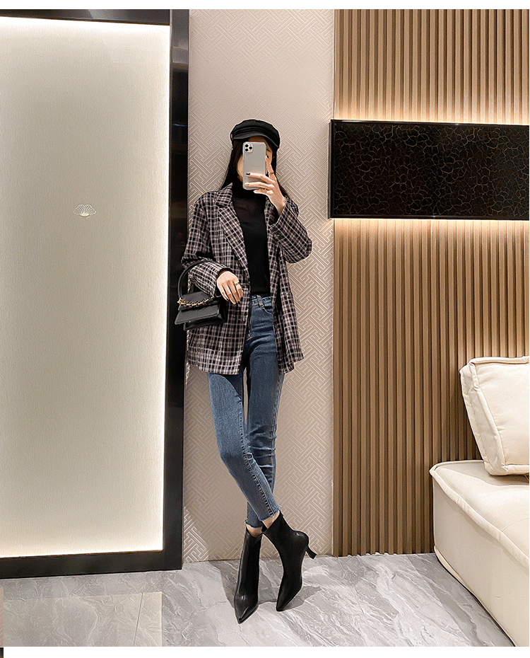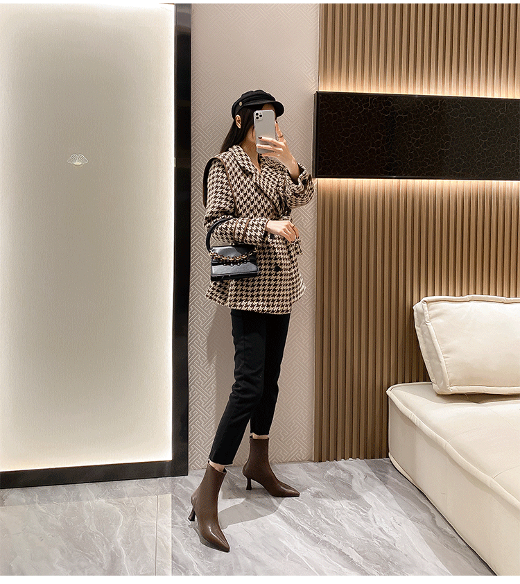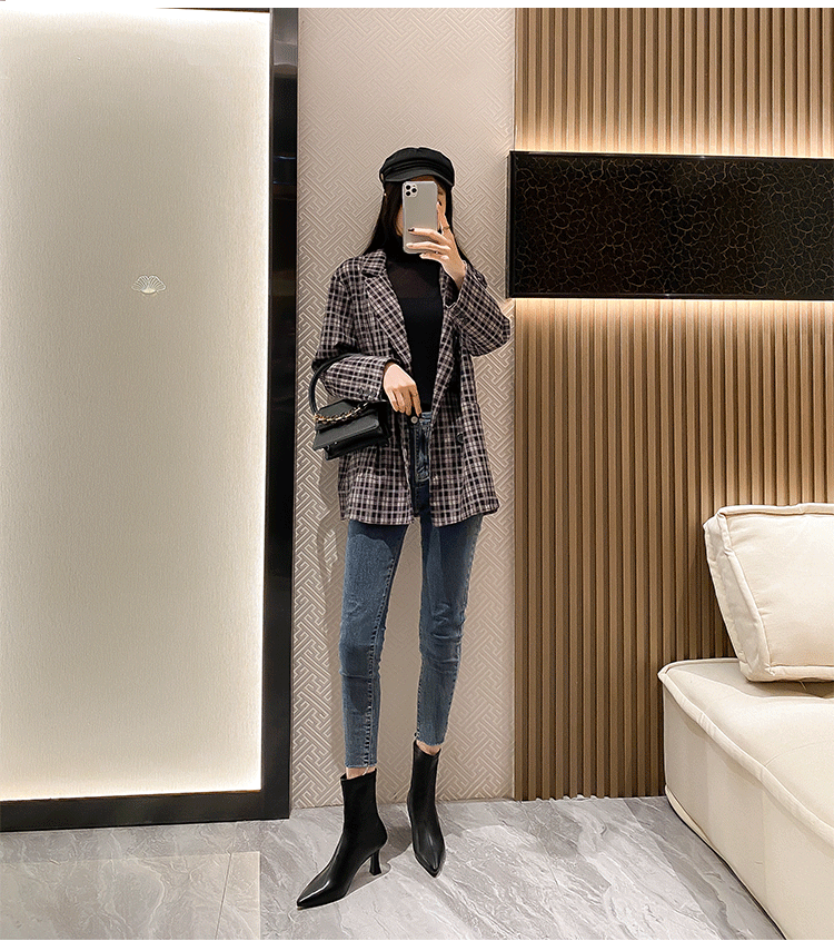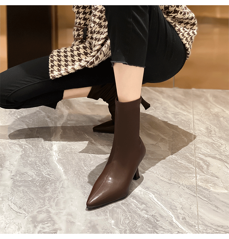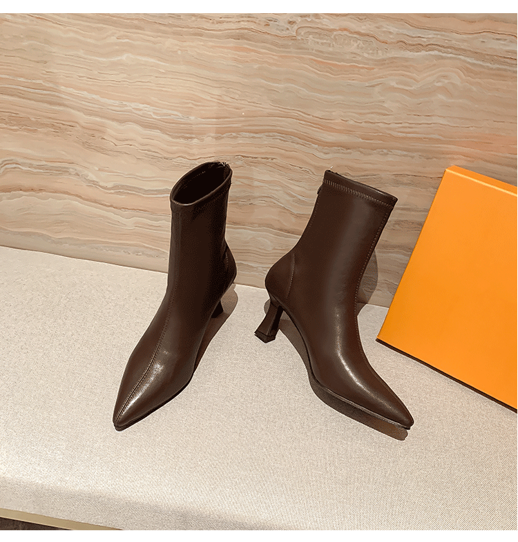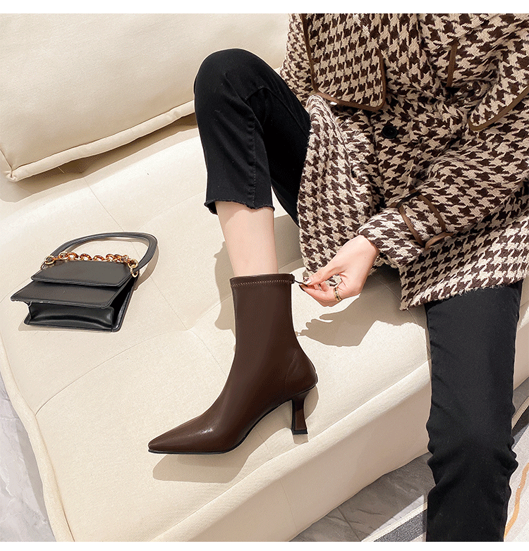 베이지 발목 부츠 여성 하이힐 가을 겨울 2024 새로운 프렌치 얇은 힐 백 지퍼 베어 부츠 포인팅 스트레치 얇은 부츠스토어 가기