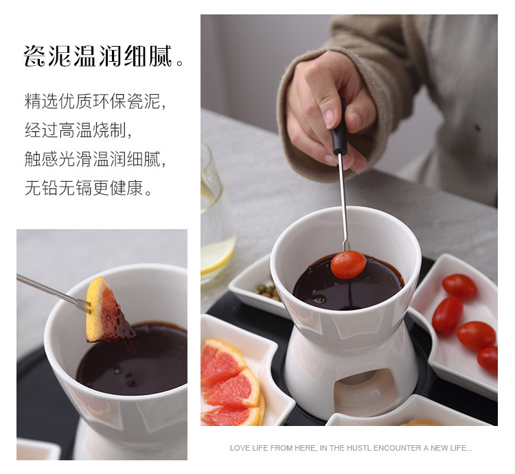 순수한 화이트 세라믹 초콜릿 퐁듀 세트 아이스크림 Haagen-Dazs 화재 보일러 DIY 치즈 퐁듀스토어 가기