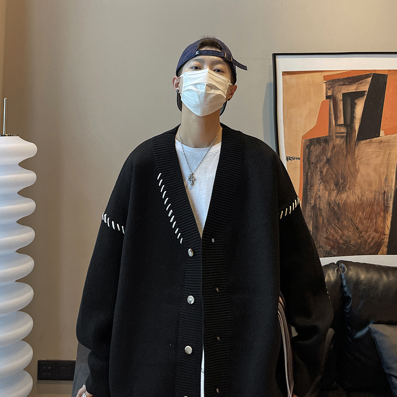 유럽과 미국의 카디건 스웨터 남자 가을 한국 스타일 패셔너블 루즈 V 넥 스웨터 아메리칸 스타일 디자인 센스 캐주얼 스웨터스토어 가기