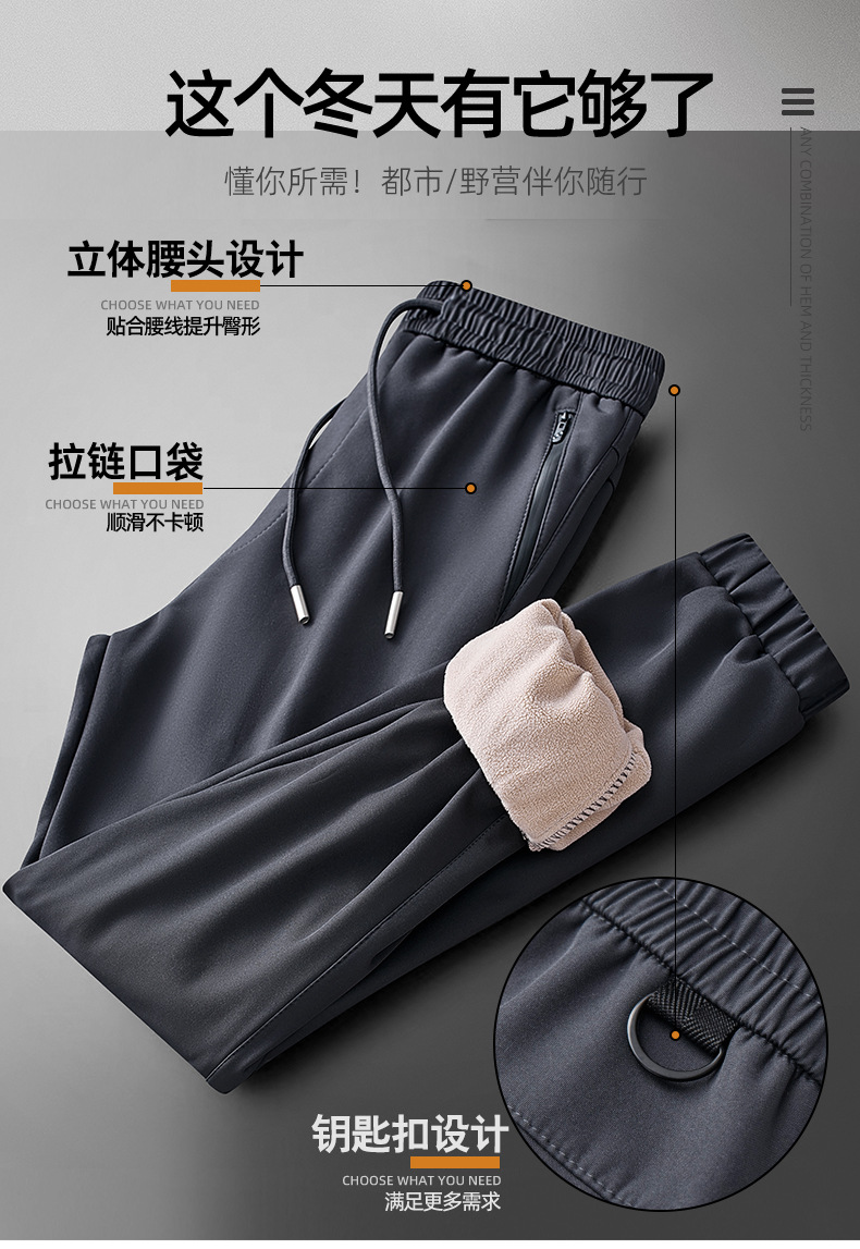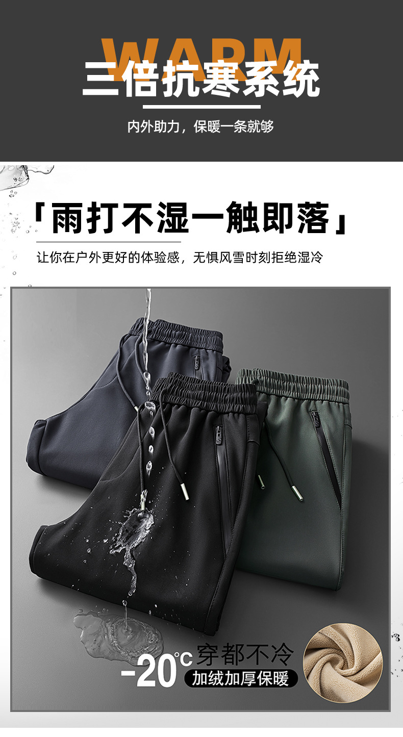 加绒加厚裤子男士秋冬户外防水防风美式工装冲锋裤宽松保暖休闲裤