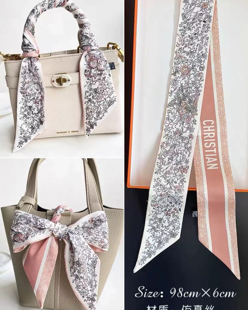 프랑스 스타일 화려한 시리즈 실크 스카프 하이 엔드 센스 실크 타이 백 핸들 장식 우아한 올 매치 헤어 밴드 장식 스카프