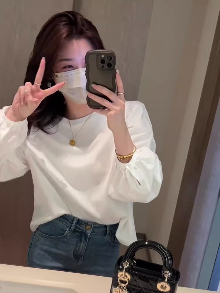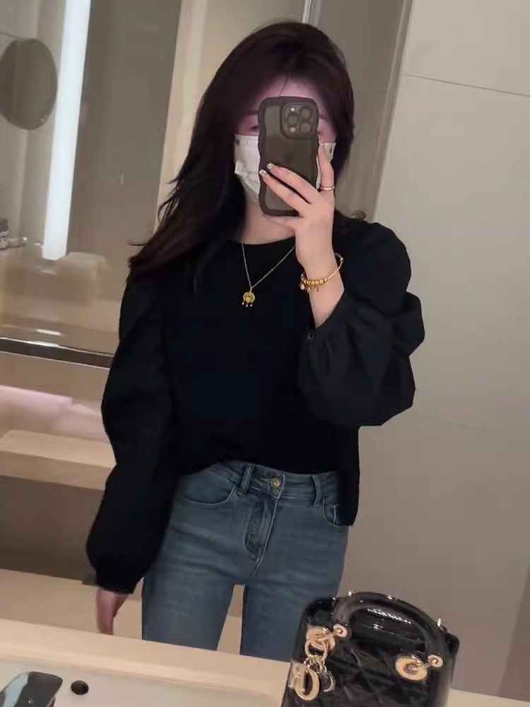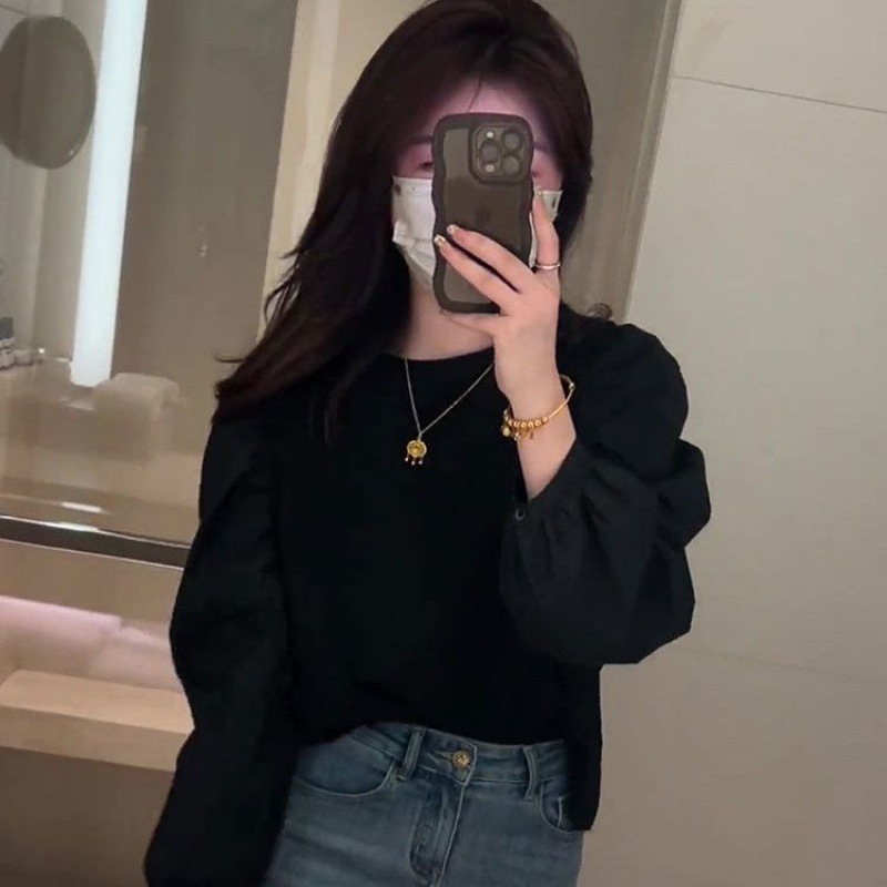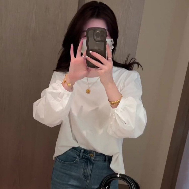 2024 년 이른 봄 긴 소매 티셔츠 여성의 새로운 여성 가을 느슨한 패션 세련된 퍼프 슬리브 탑