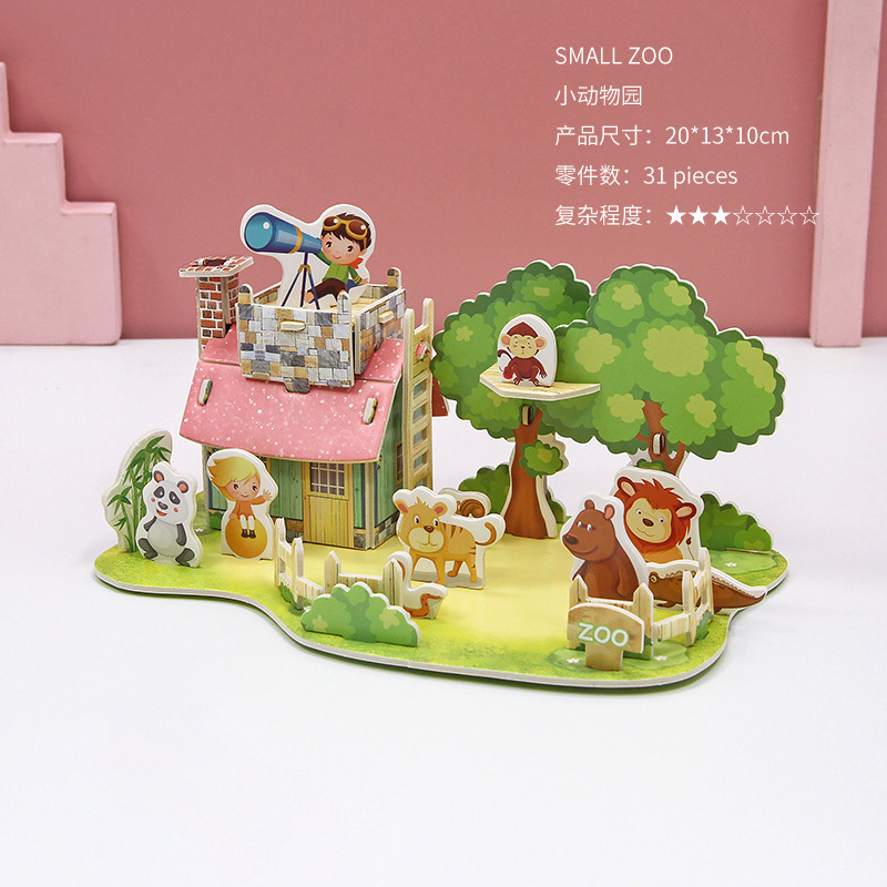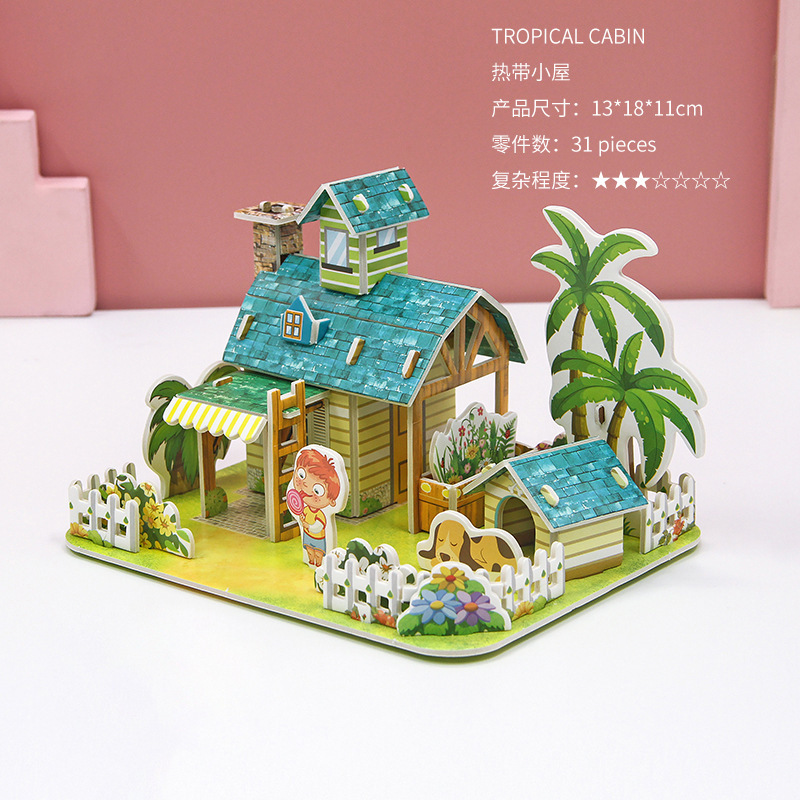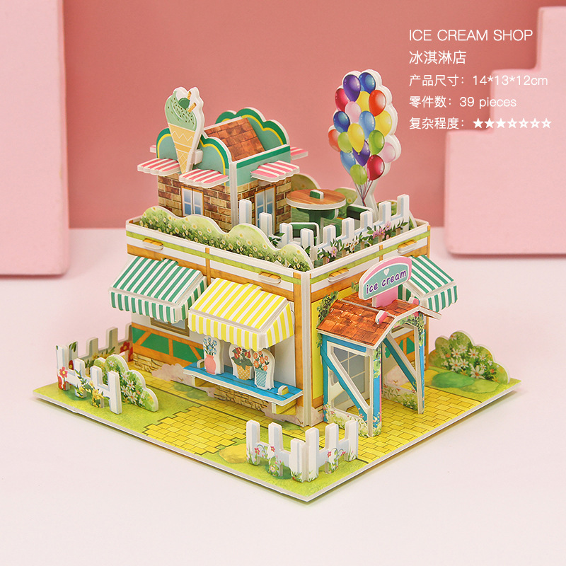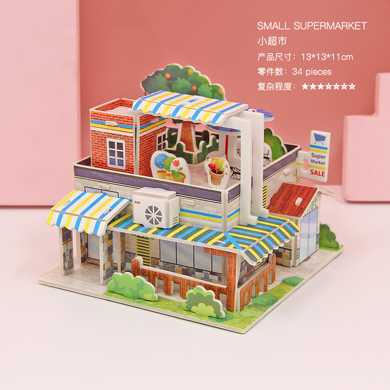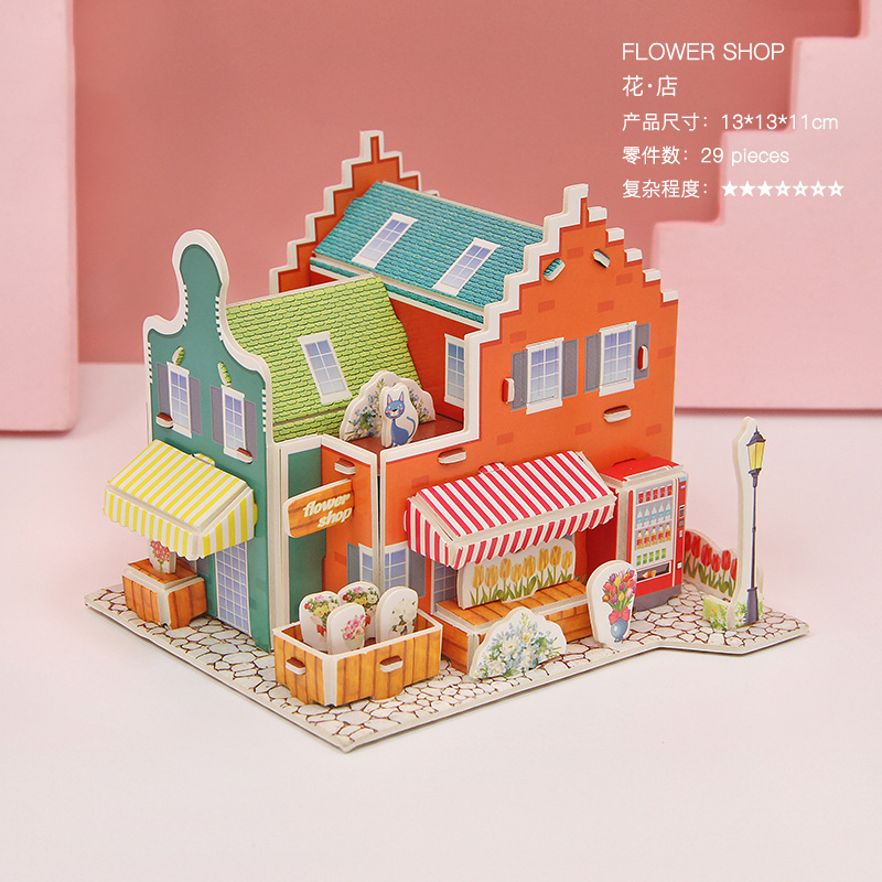 어린이 3D 입체 퍼즐 도매 소년 소녀 교육 장난감 종이 집 모델 수제 DIY 마구간 재고스토어 가기