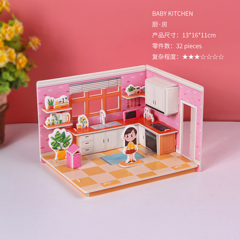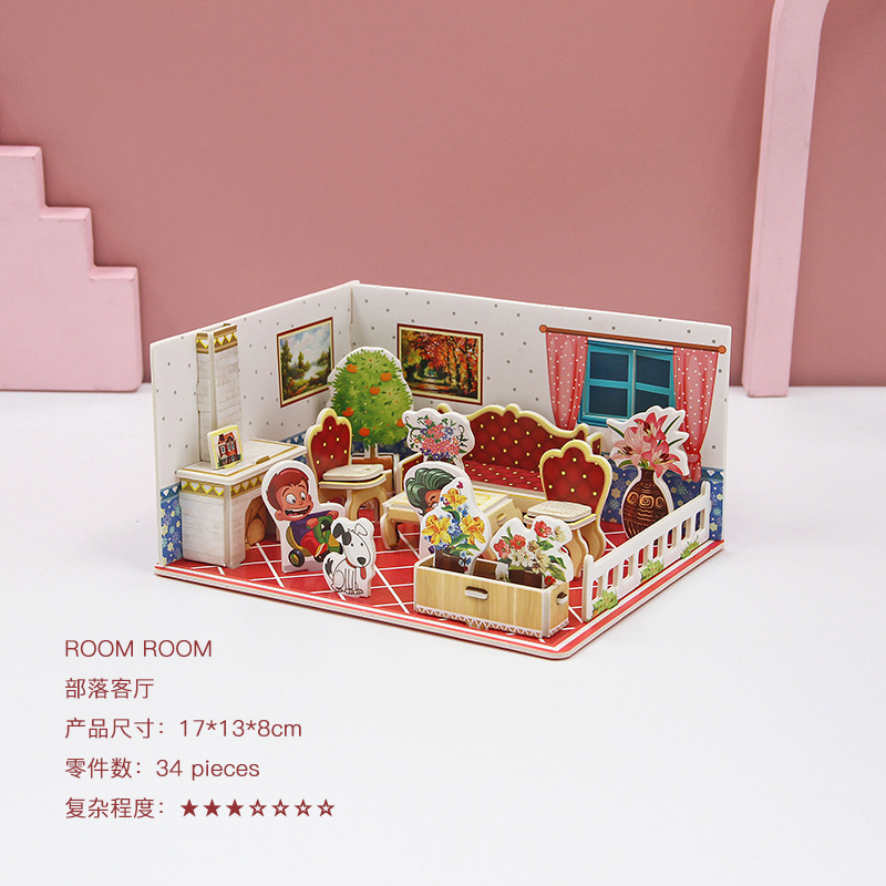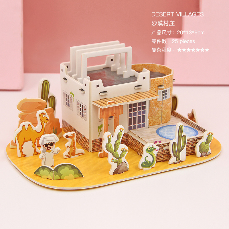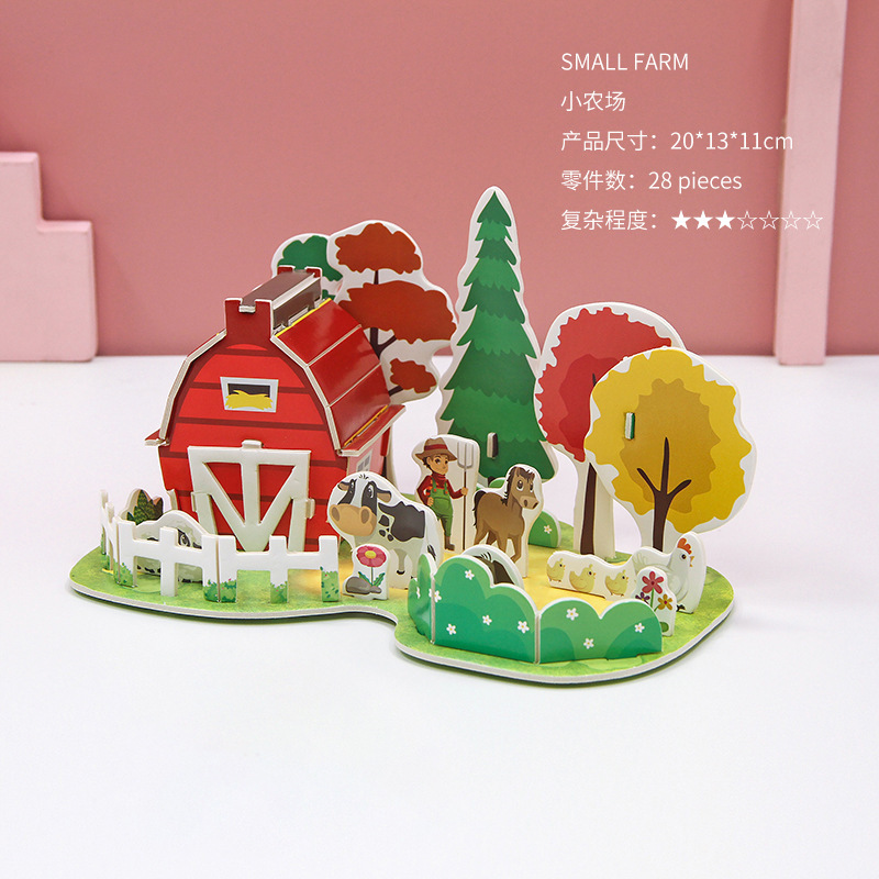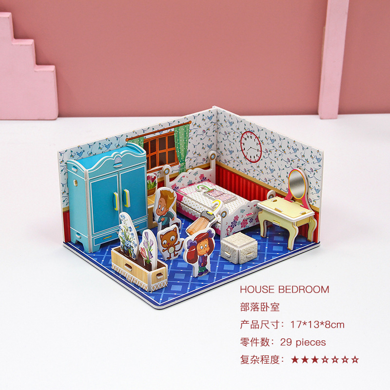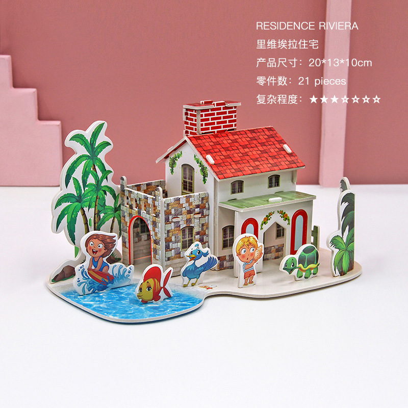 어린이 3D 입체 퍼즐 도매 소년 소녀 교육 장난감 종이 집 모델 수제 DIY 마구간 재고스토어 가기