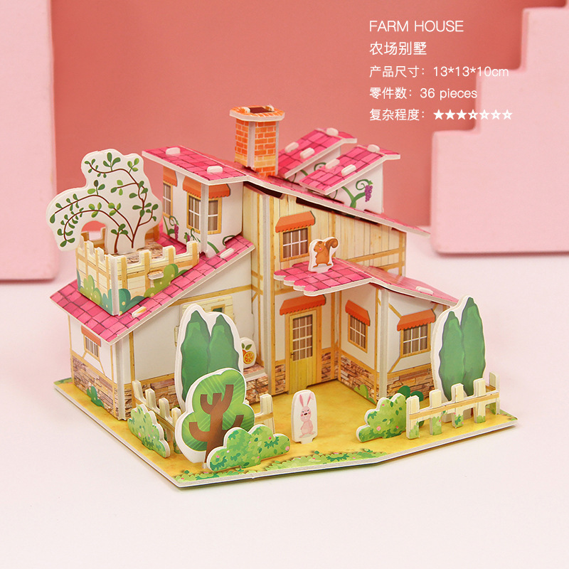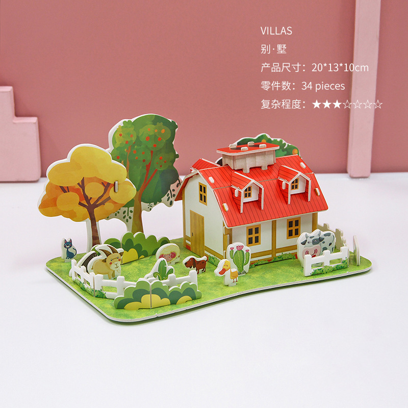 어린이 3D 입체 퍼즐 도매 소년 소녀 교육 장난감 종이 집 모델 수제 DIY 마구간 재고