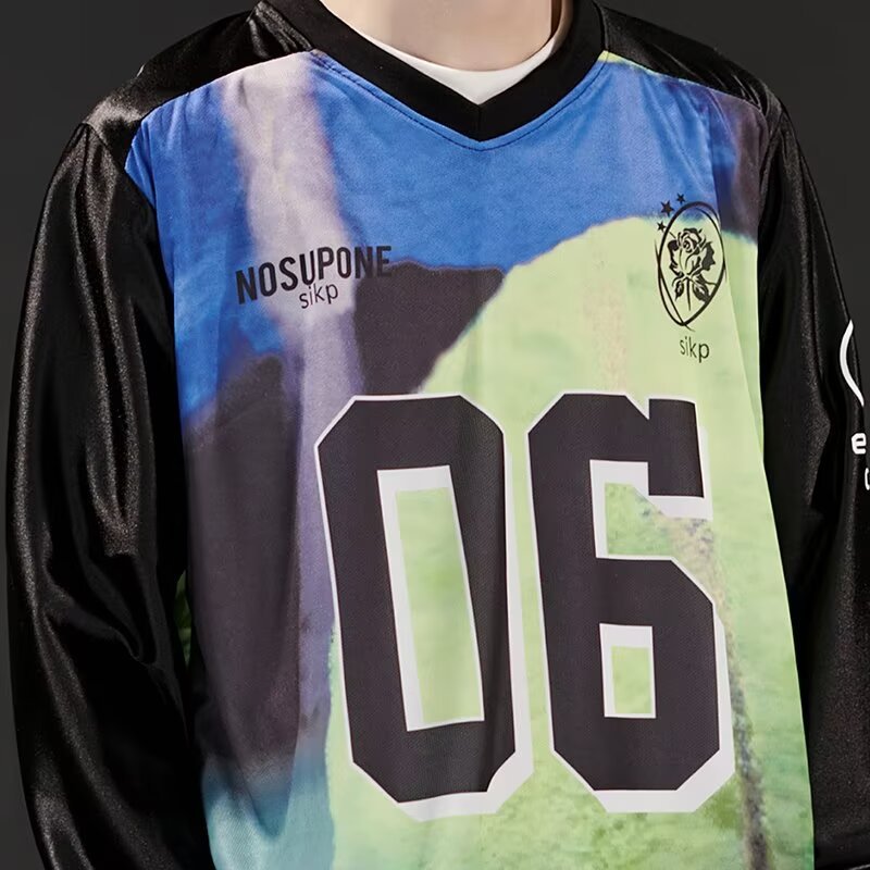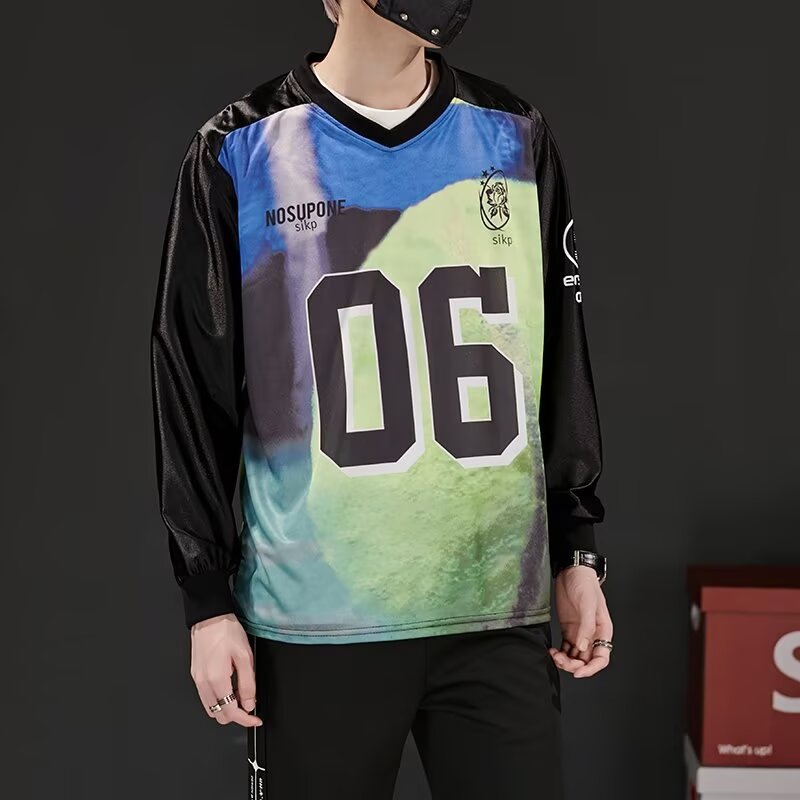 2024 American Street V-neck 인쇄 디자인 센스 저지 긴팔 티셔츠 남성 및 여성 레트로 루즈 스포츠 캐주얼 탑