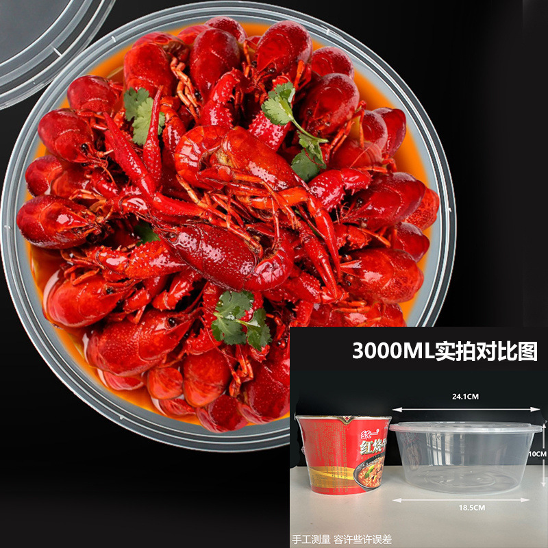 2000 3000ml 라운드 일회용 도시락 테이크 아웃 포장 상자 투명 절인 양배추 물고기 maucai 랍스터 라운드 분지 새로운스토어 가기