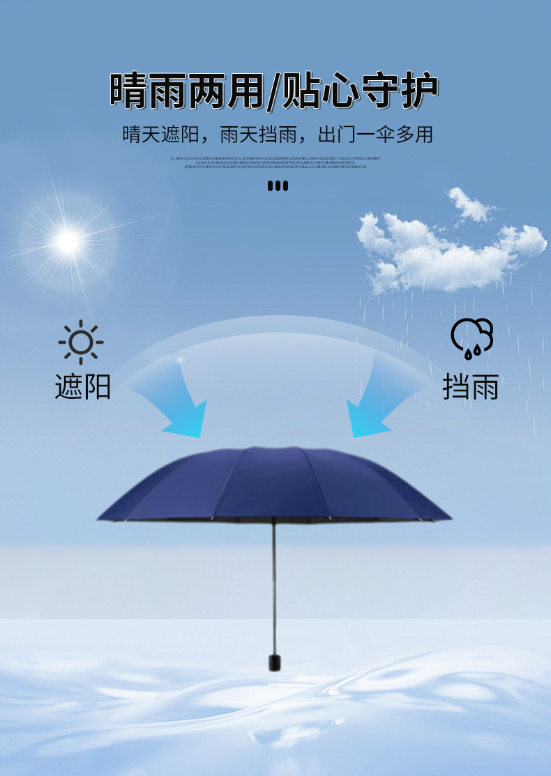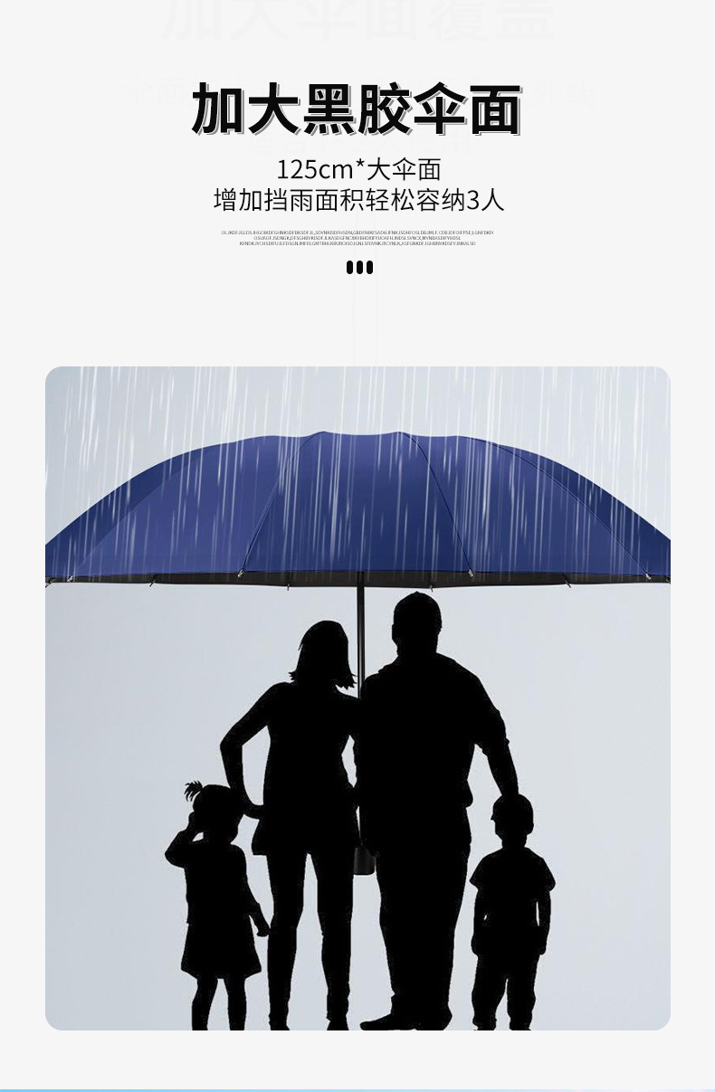 우산을 가진 세 사람 도매 증가 강화 강화 반 햇살 비 이중 목적 검은 고무 우산 재고 머리카락 세대