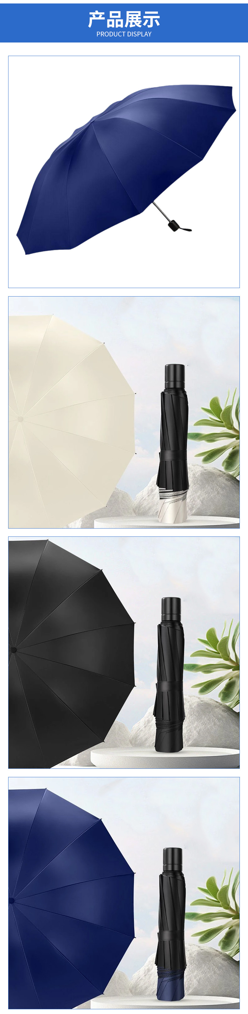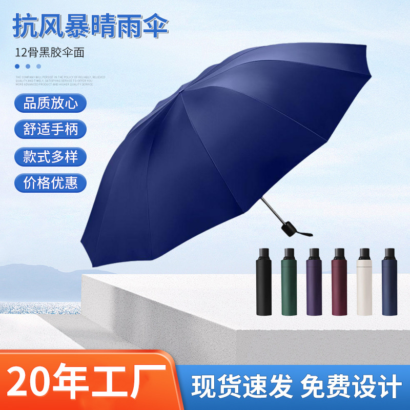 우산을 가진 세 사람 도매 증가 강화 강화 반 햇살 비 이중 목적 검은 고무 우산 재고 머리카락 세대스토어 가기
