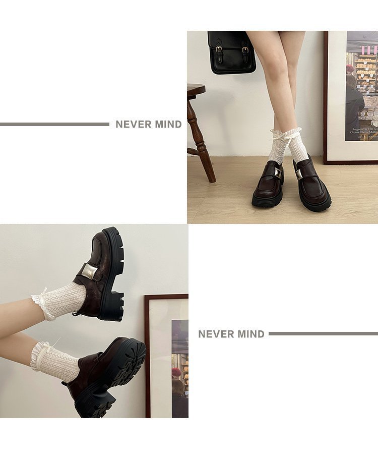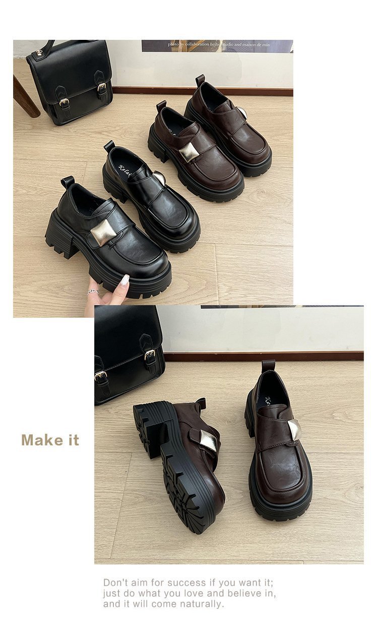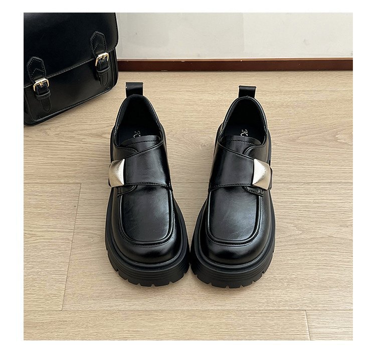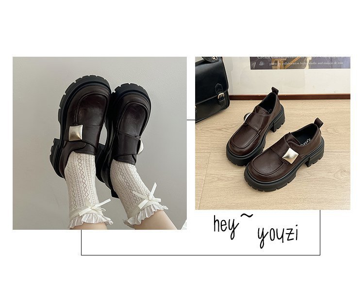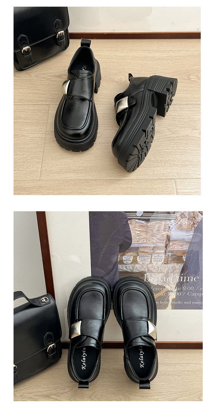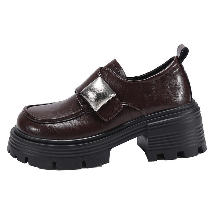 여성을위한 복고풍 두꺼운 밑창 로퍼 2025 가을 새로운 스타일 벨크로 두꺼운 굽 작은 둥근 발가락 다목적 작은 가죽 신발 JK스토어 가기