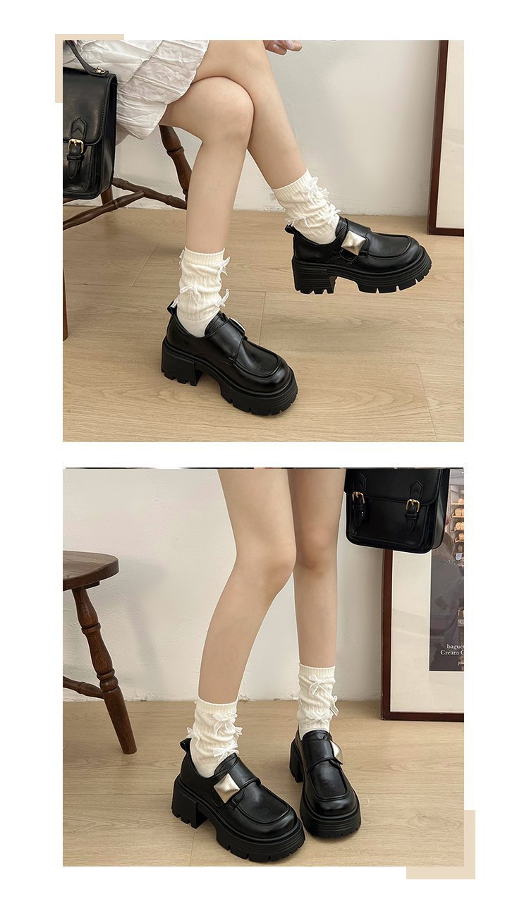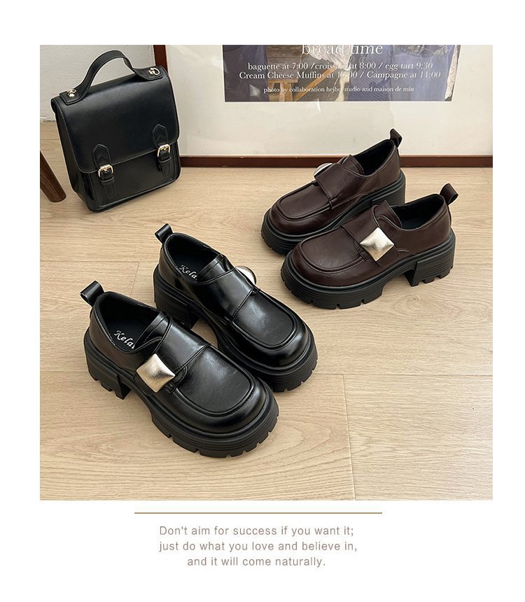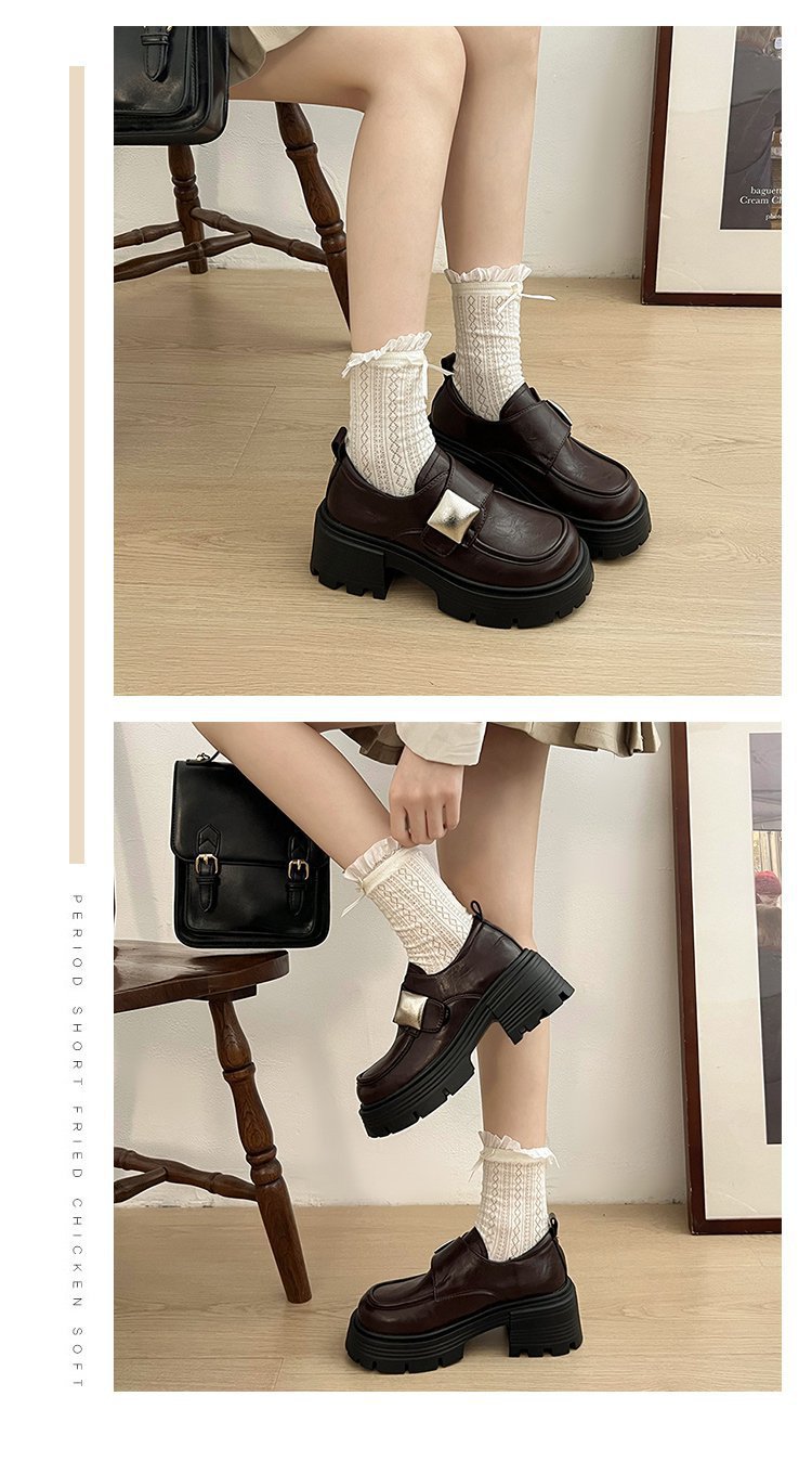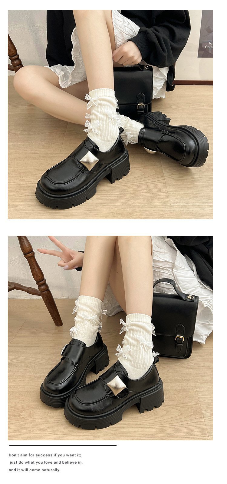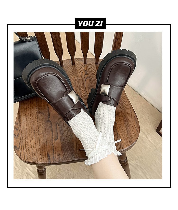 여성을위한 복고풍 두꺼운 밑창 로퍼 2025 가을 새로운 스타일 벨크로 두꺼운 굽 작은 둥근 발가락 다목적 작은 가죽 신발 JK스토어 가기