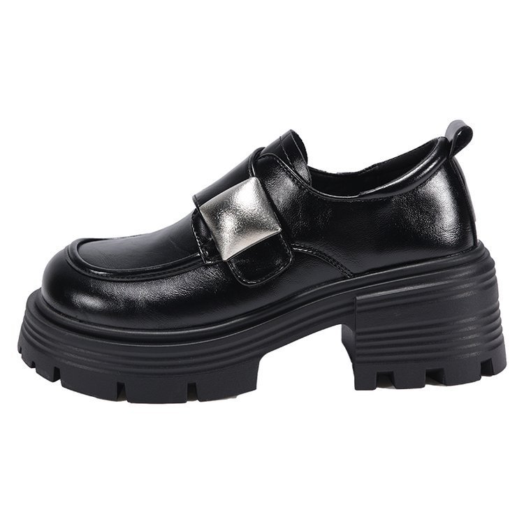 여성을위한 복고풍 두꺼운 밑창 로퍼 2025 가을 새로운 스타일 벨크로 두꺼운 굽 작은 둥근 발가락 다목적 작은 가죽 신발 JK