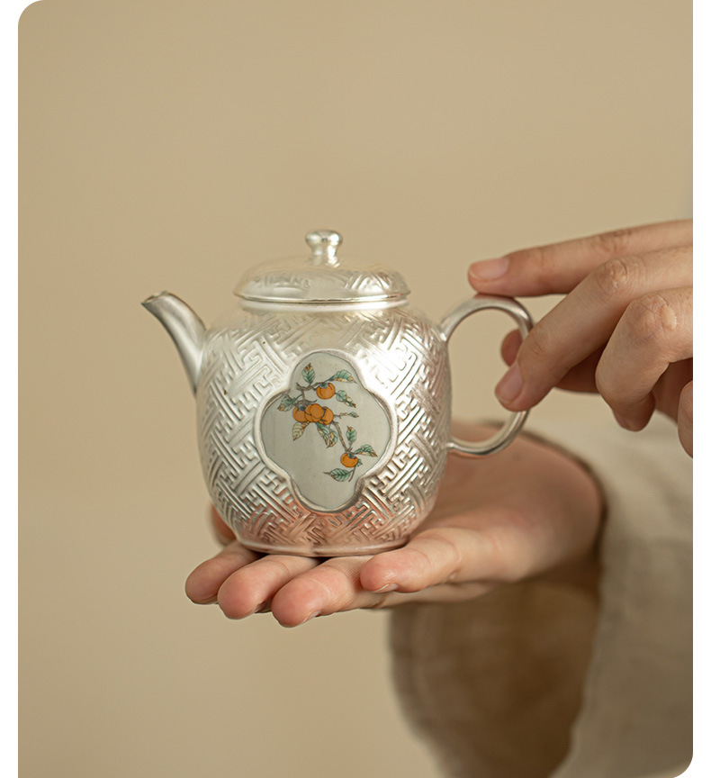 수제 실버 감 및 감 루이 주전자 커버 보울 티 컵 세트 주전자 차 시음 컵 쿵푸 티 세트 동반 행사스토어 가기