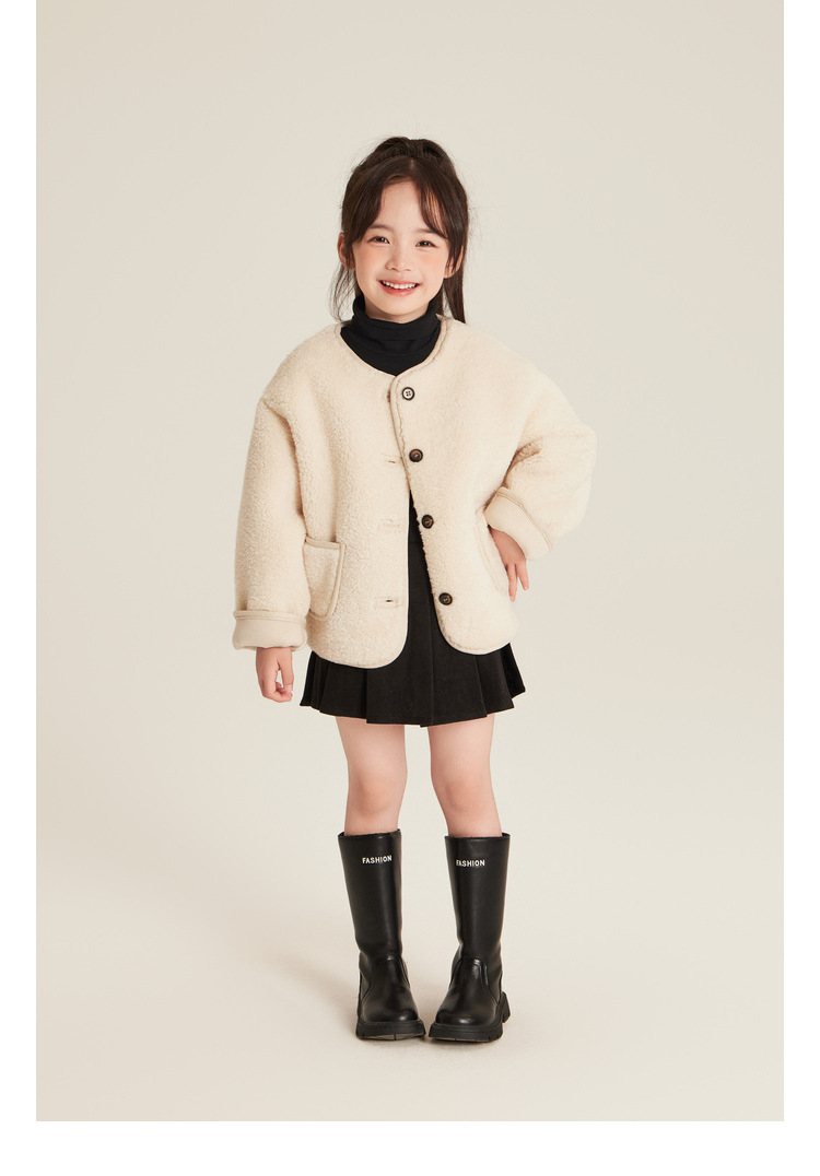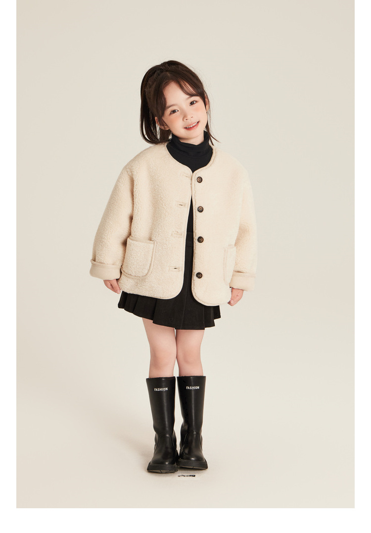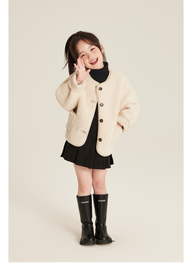 Amybaby Girls 'Coat Winter 2024 새로운 한국식 Ins 간단한 솔리드 컬러 캐주얼 올 매치 코트