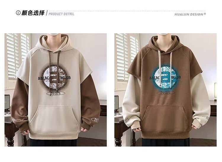 바느질 슬리브 스웨트 셔츠 남자의 봄과 가을 패션 브랜드 아메리칸 스타일 느슨한 기모 플러스 사이즈 캐주얼 보이즈 핸섬 후드 재킷스토어 가기