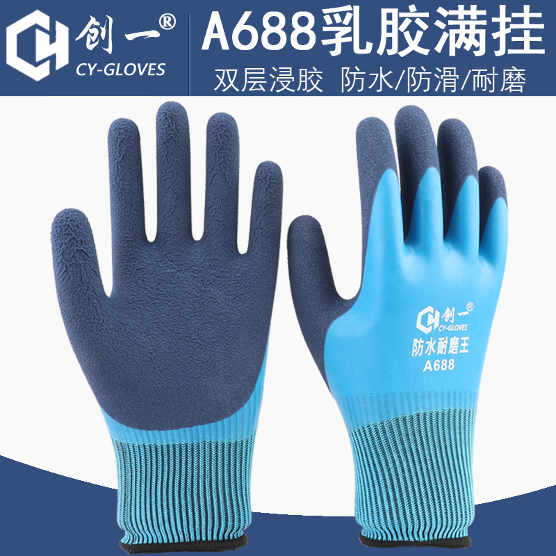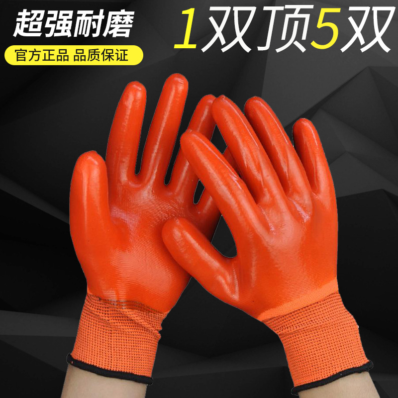 장갑 노동 보호 내마모성 작업 두꺼운 접착제 두부 전체 교수형 전체 접착제 노동 사이트 남성 작업 고무 방수 오일 방지 클라우드스토어 가기