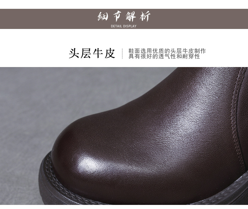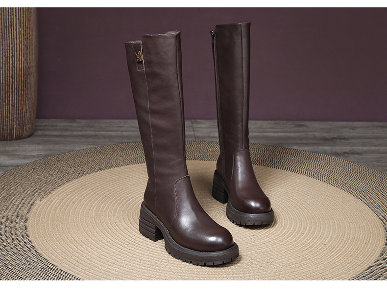 Delphinium 2024 겨울 새로운 첫 번째 레이어 cowhide 캐주얼 영국 스타일의 두꺼운 힐 하이 부츠 기모 따뜻한 무릎 높이 부츠