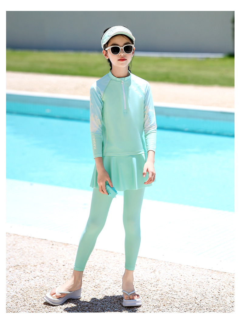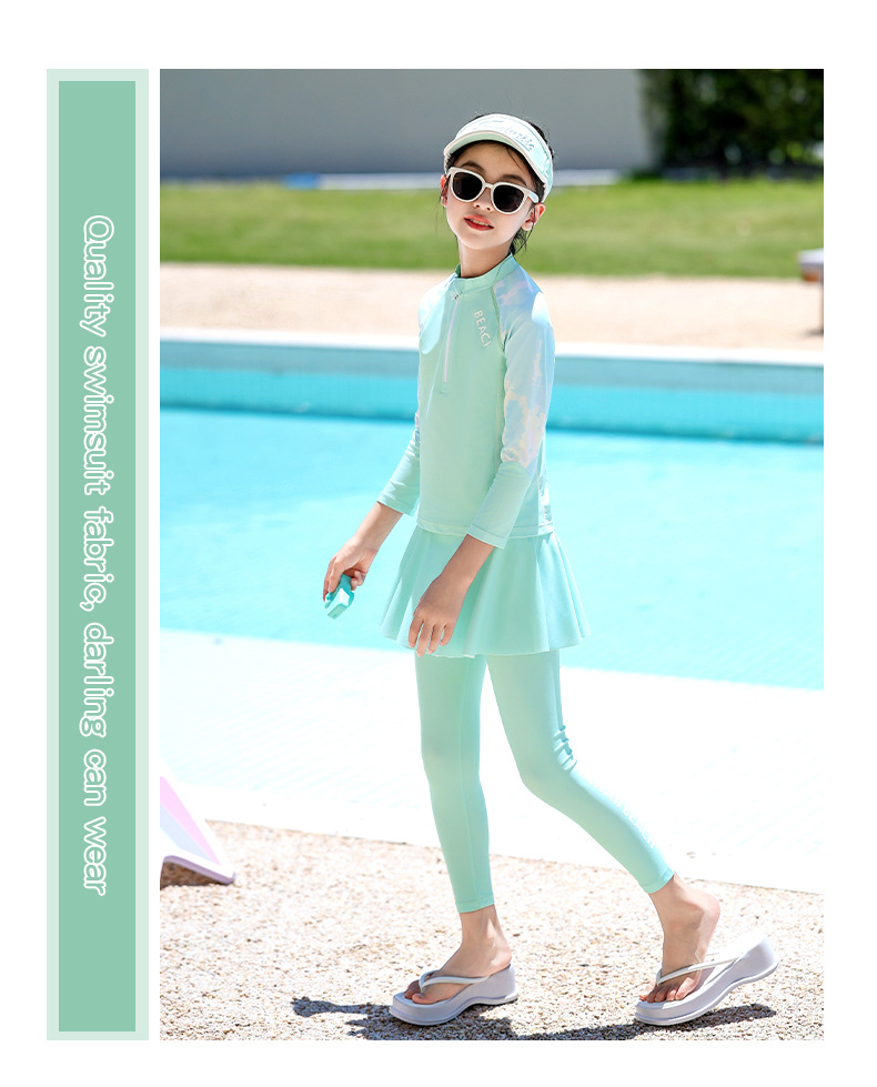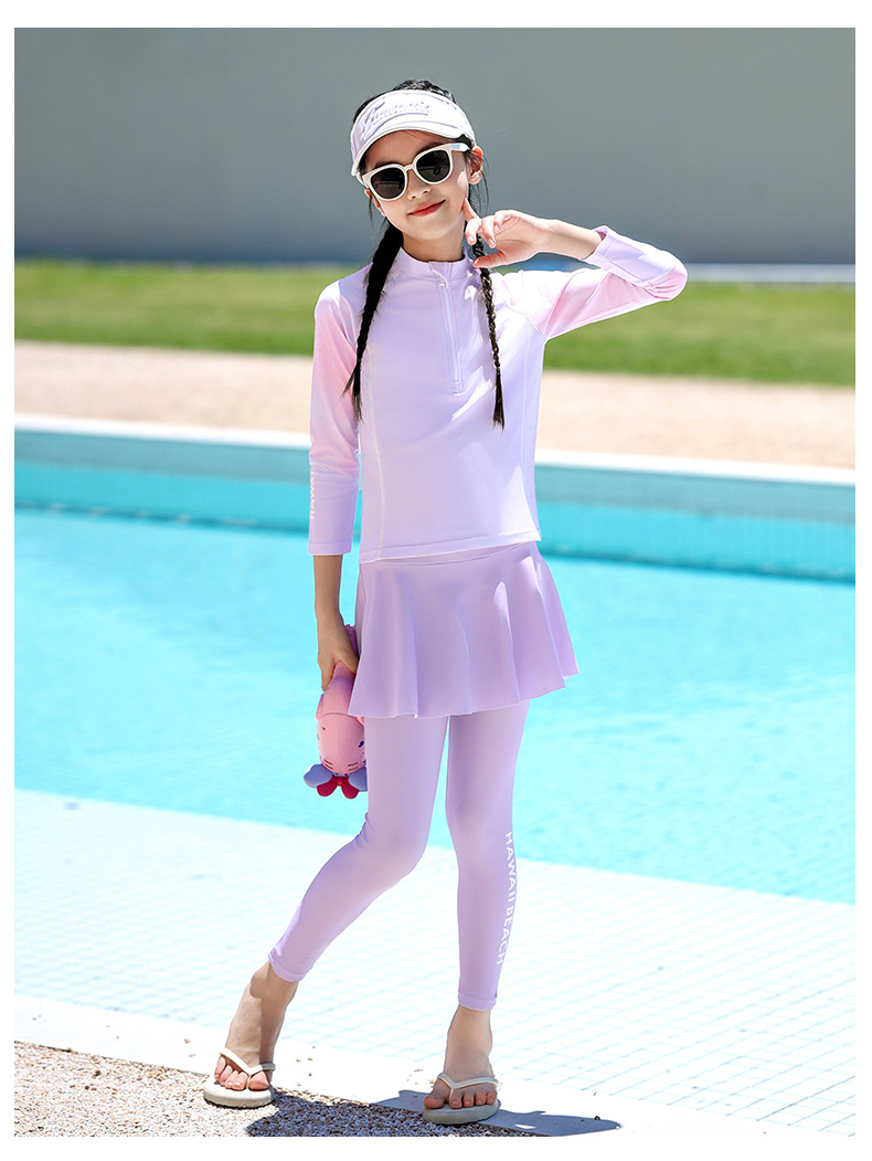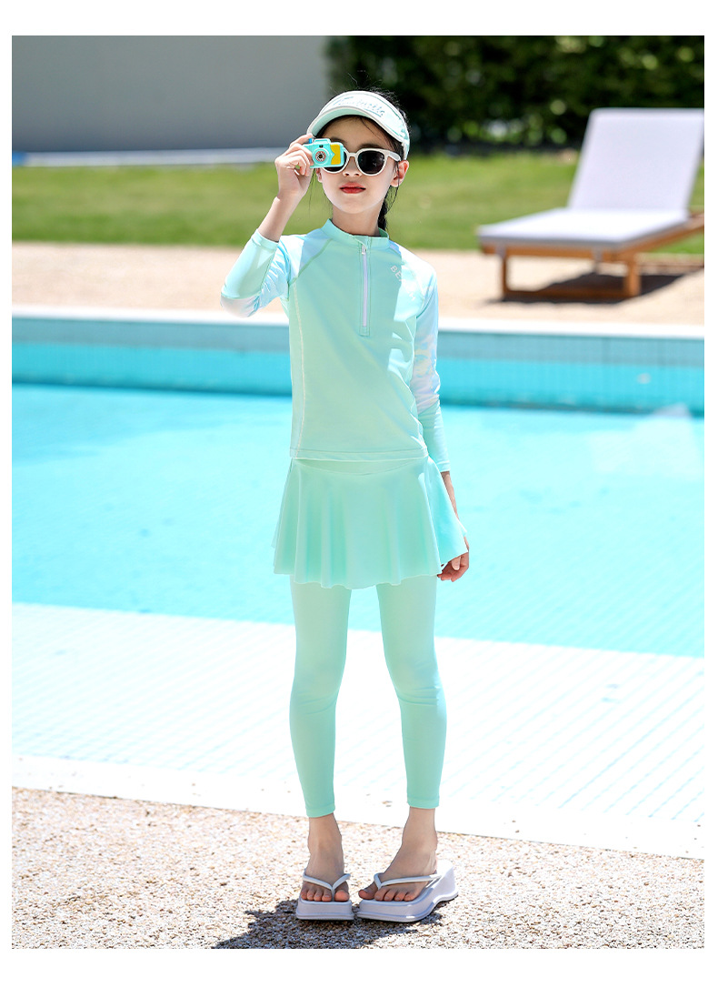 어린이 수영복 분할 소녀 2024 긴 소매 바지 선 스크린 수영복 소녀 보수 수영 도매