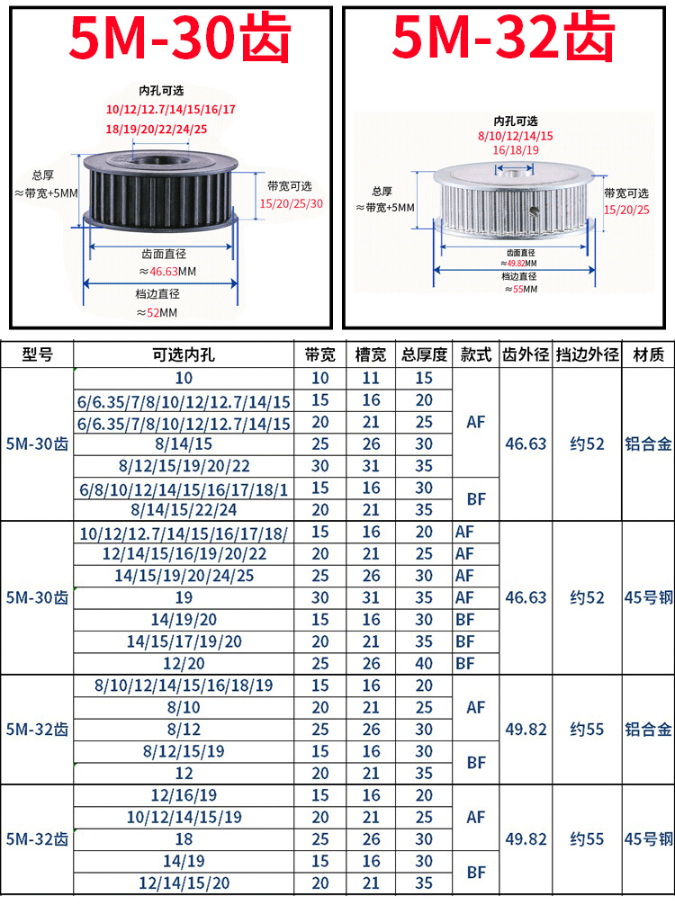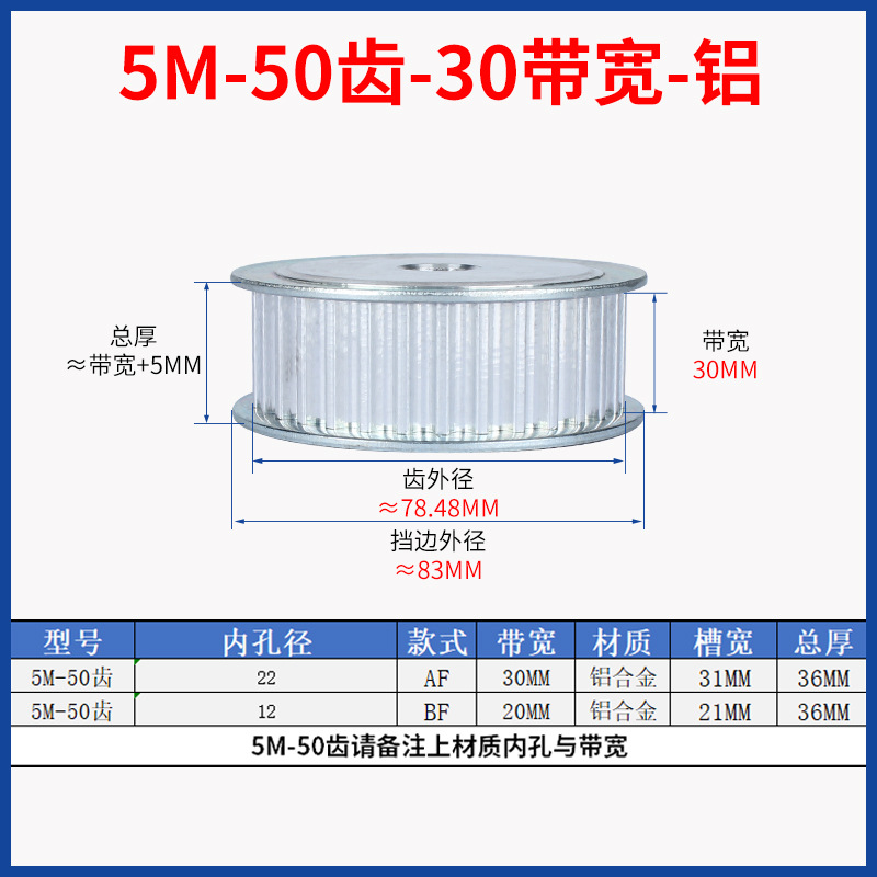• 5M-50 치아-30 대역폭-알루미늄